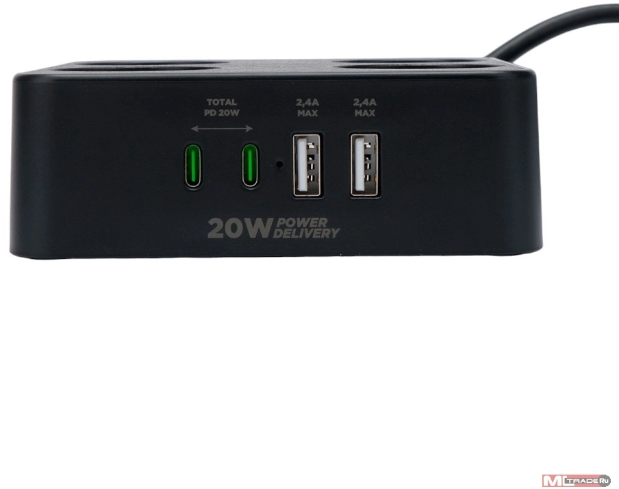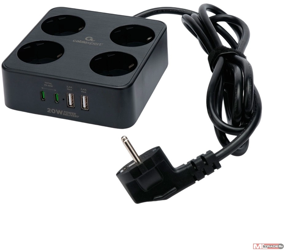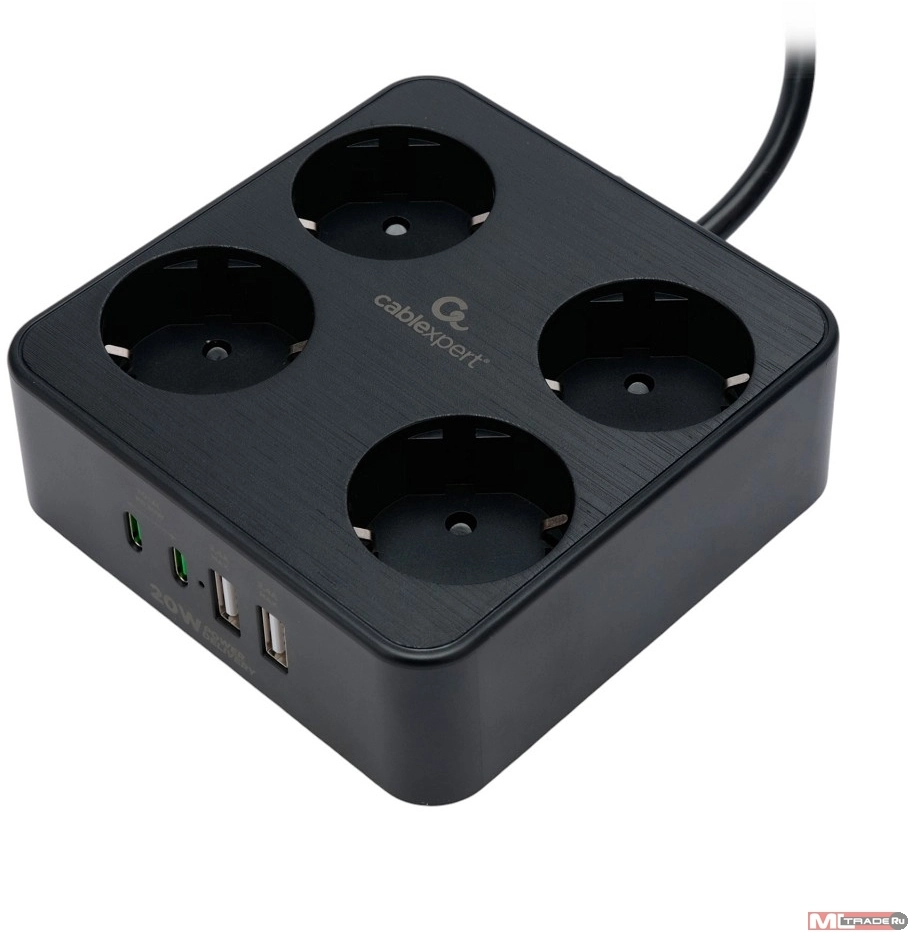 Кабель эксперт Cablexpert Сетевой фильтр Plate PLT-4-C2U2-B-3 (4р, 10А, 2xType-C PD, 20Вт, 2xUSB, 3м, ур.защиты 4+) черный, коробка (22563)