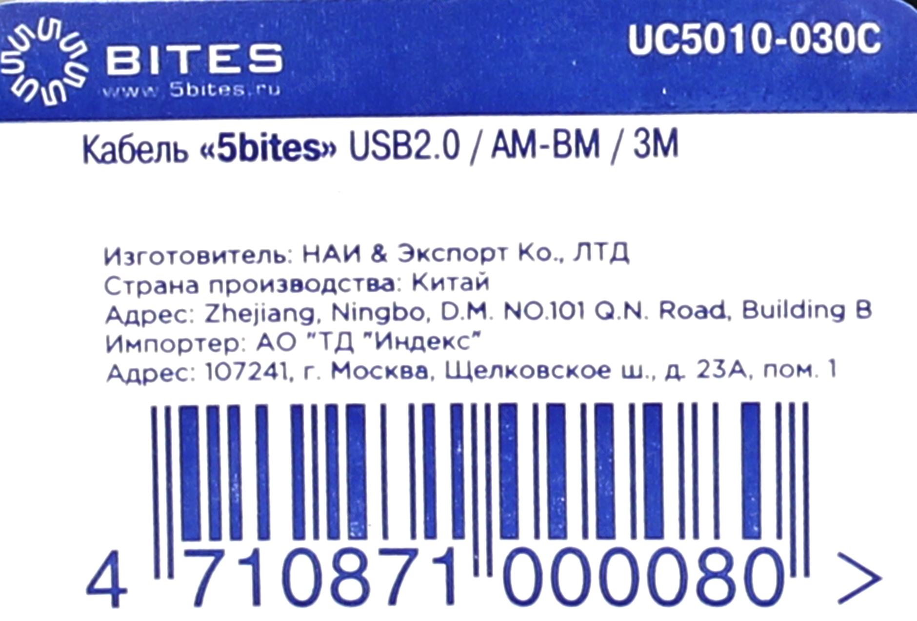 кабели 5bites UC5010-030C Кабель USB2.0, AM/ BM, 3м.