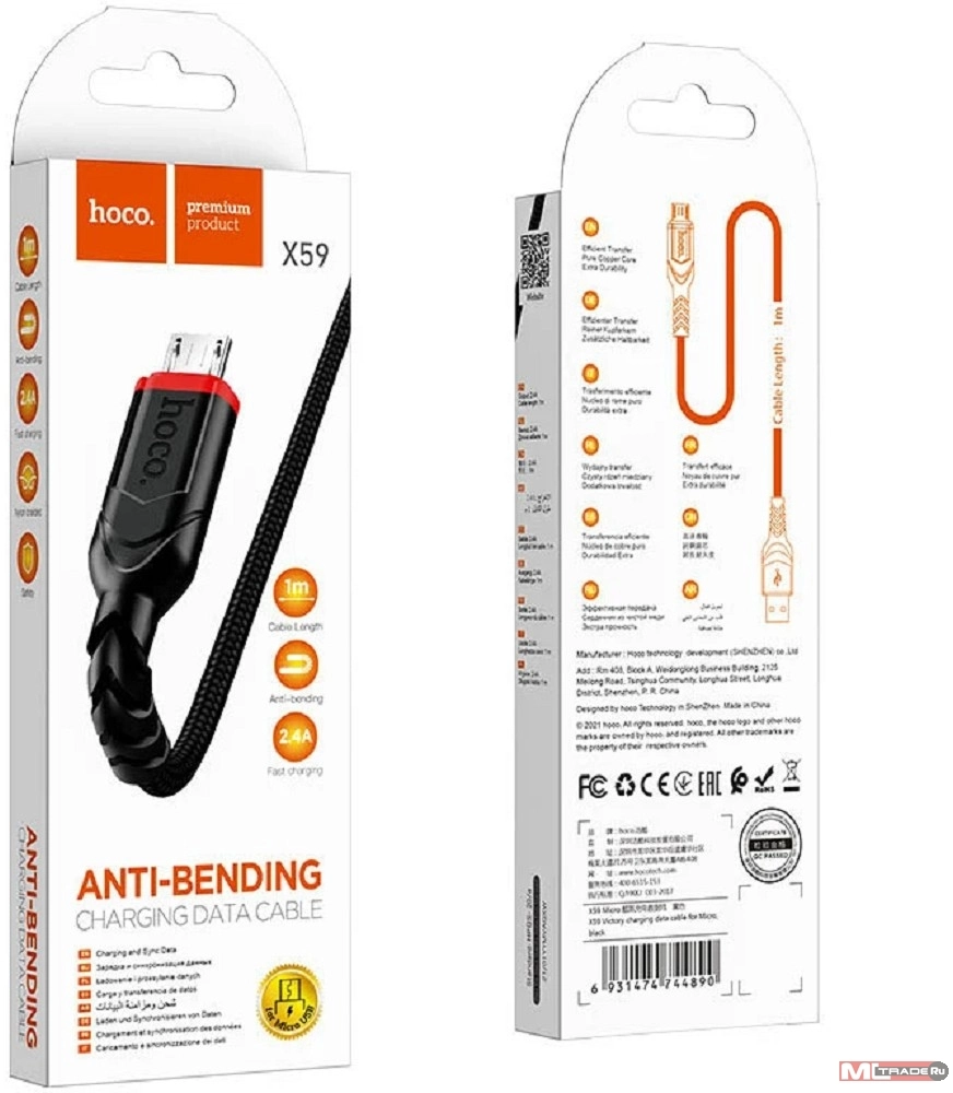 кабели HOCO X59/ USB кабель Micro/ 1m/ 2.4A/ Нейлон/ Black [HC-44890]