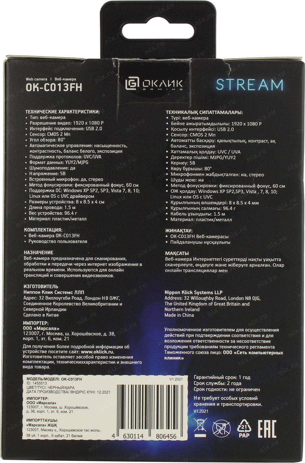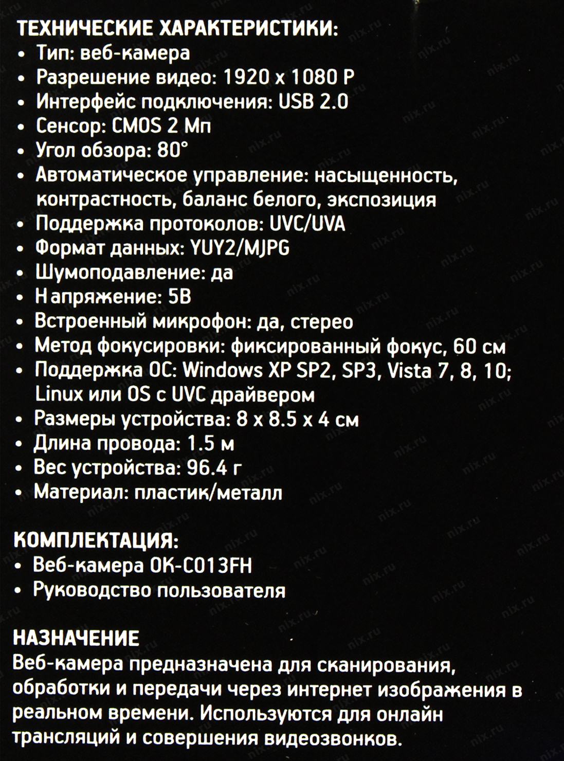 Камера Web Оклик OK-C013FH черный 2Mpix (1920x1080) USB2.0 с микрофоном OKLICK