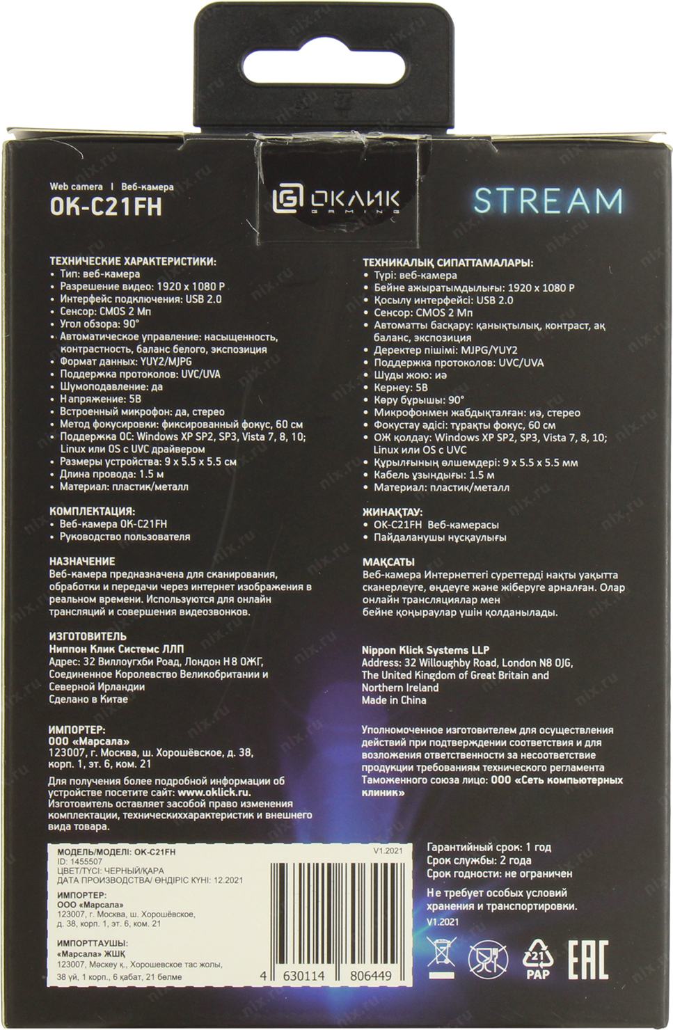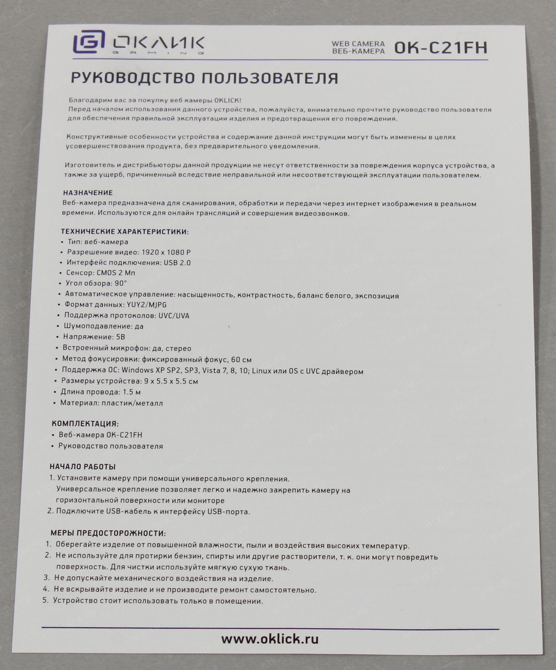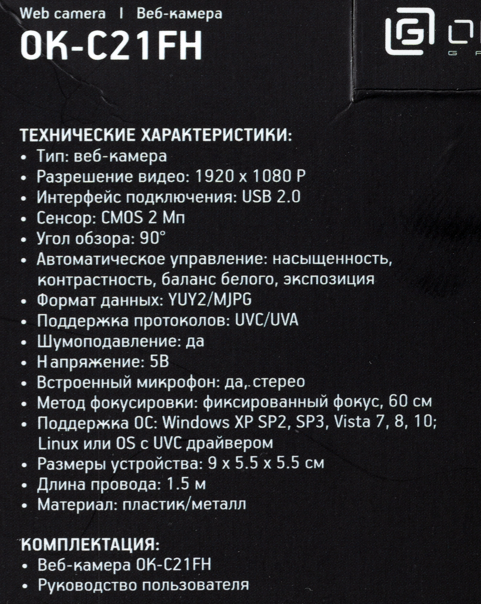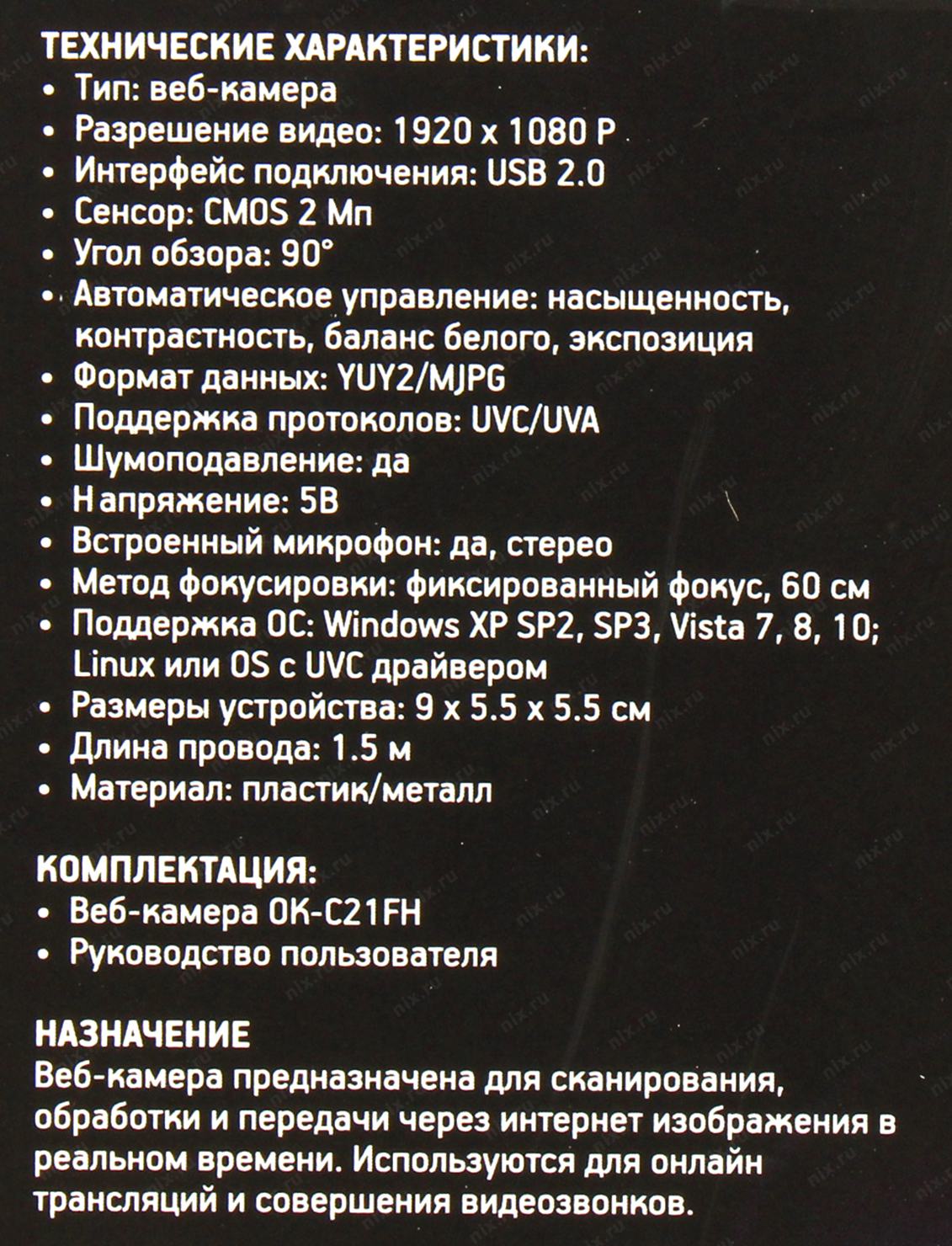 Камера Web Оклик OK-C21FH черный 2Mpix (1920x1080) USB2.0 с микрофоном OKLICK