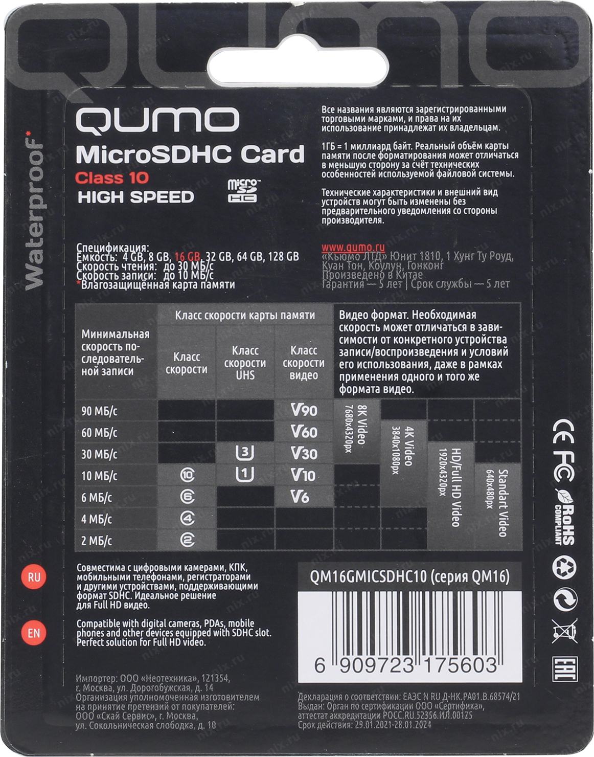 Данная карта может использоваться только в устройствах с поддержкой SDHC.