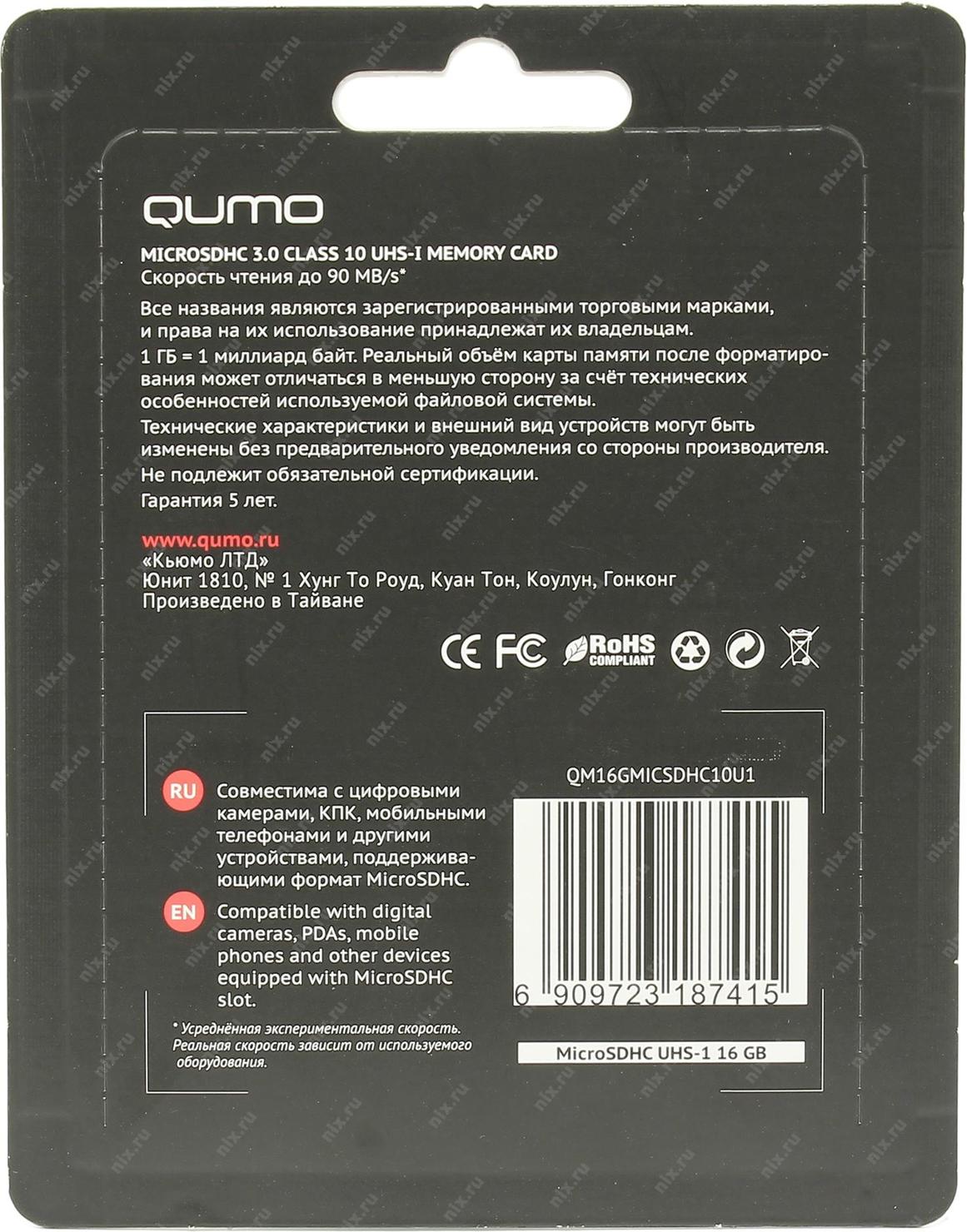 Данная карта может использоваться только в устройствах с поддержкой SDHC.