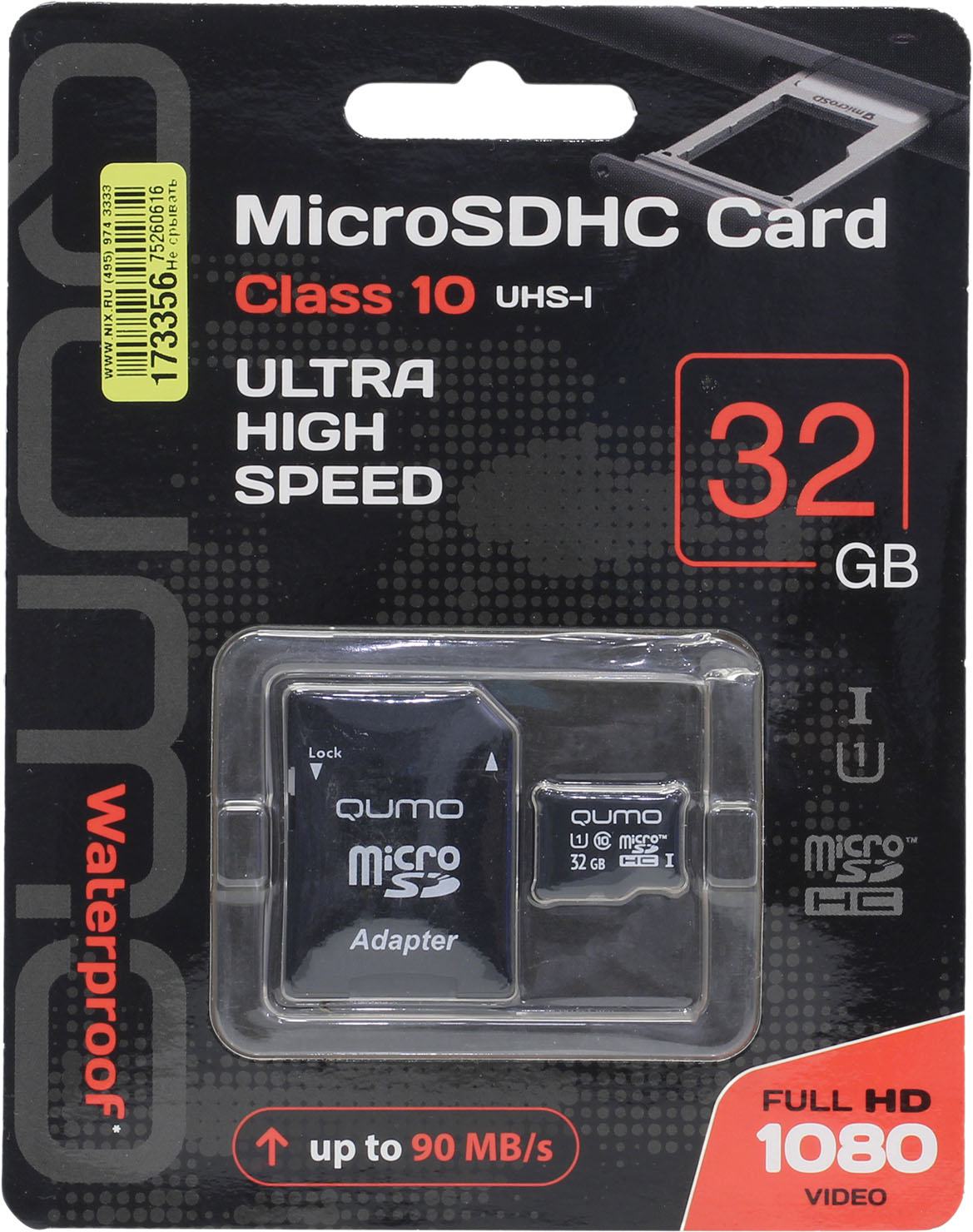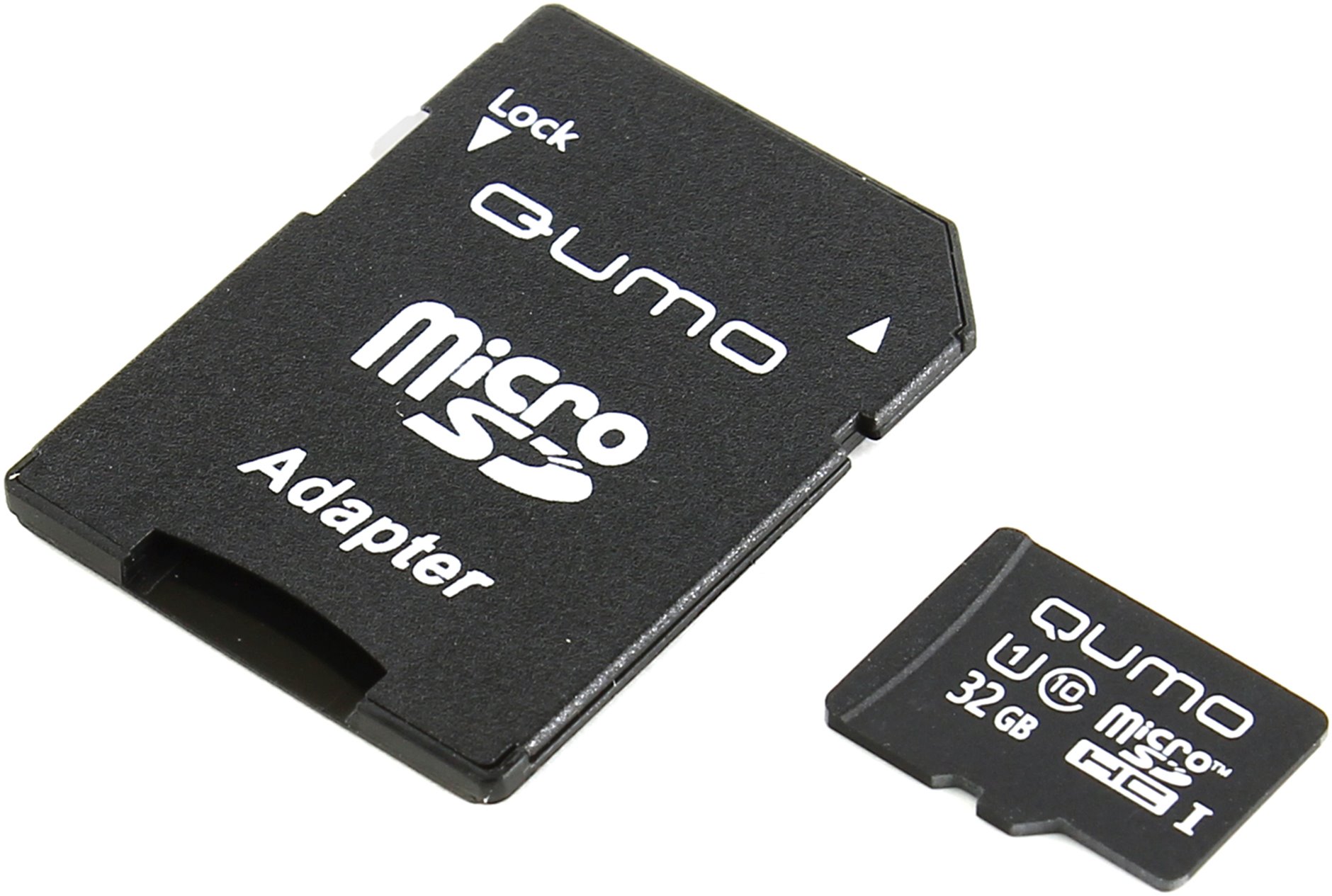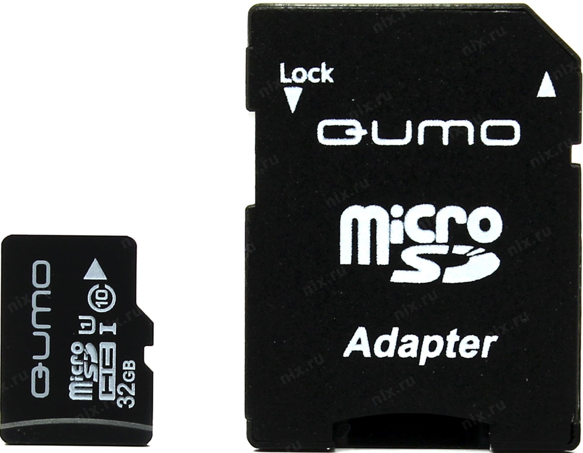 Карта памяти Qumo < QM32GMICSDHC10U1> microSDHC 32Gb UHS-I U1 + microSD--> SD Adapter