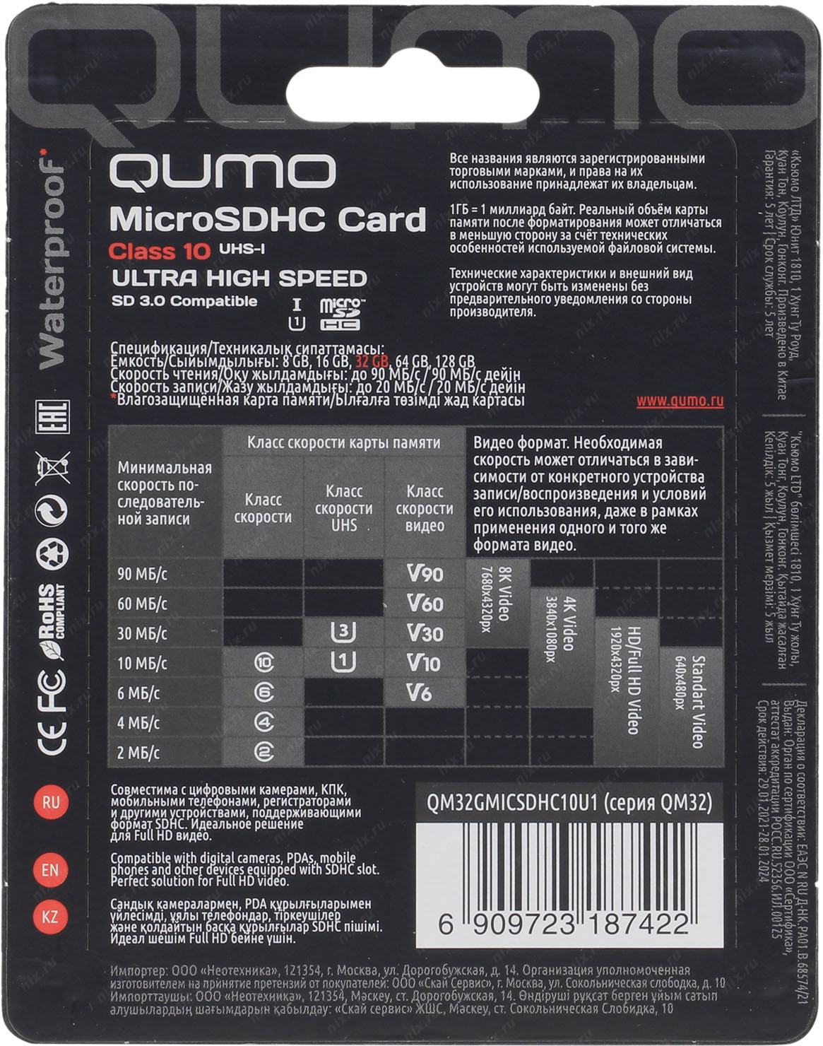 Данная карта может использоваться только в устройствах с поддержкой SDHC.