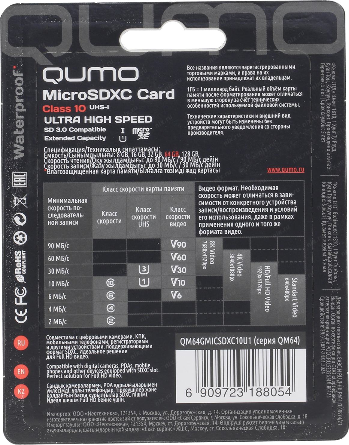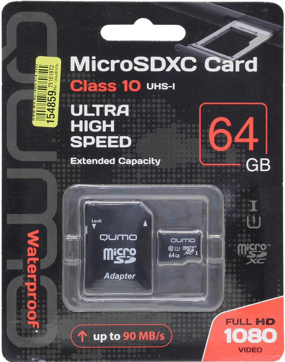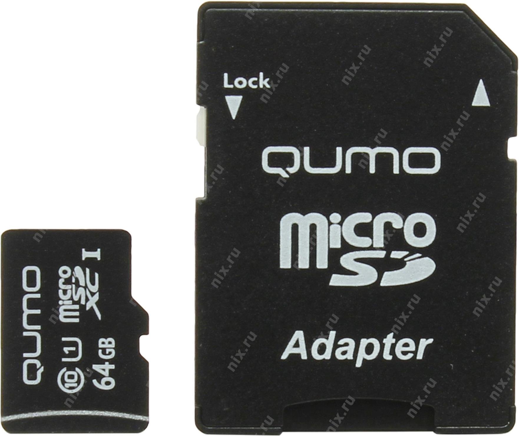 Карта памяти Qumo < QM64GMICSDXC10U1> microSDXC 64Gb UHS-I U1 + microSD--> SD Adapter