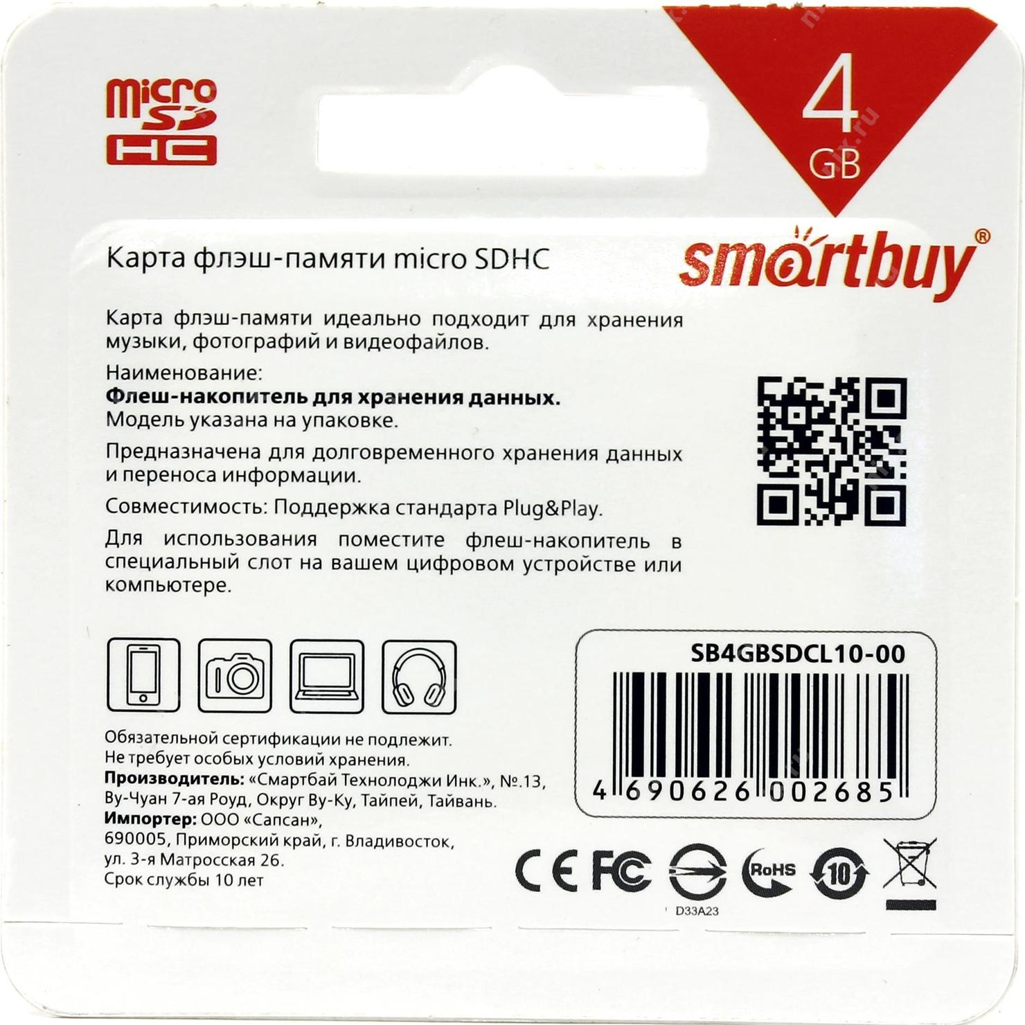 Данная карта может использоваться только в устройствах с поддержкой SDHC.
