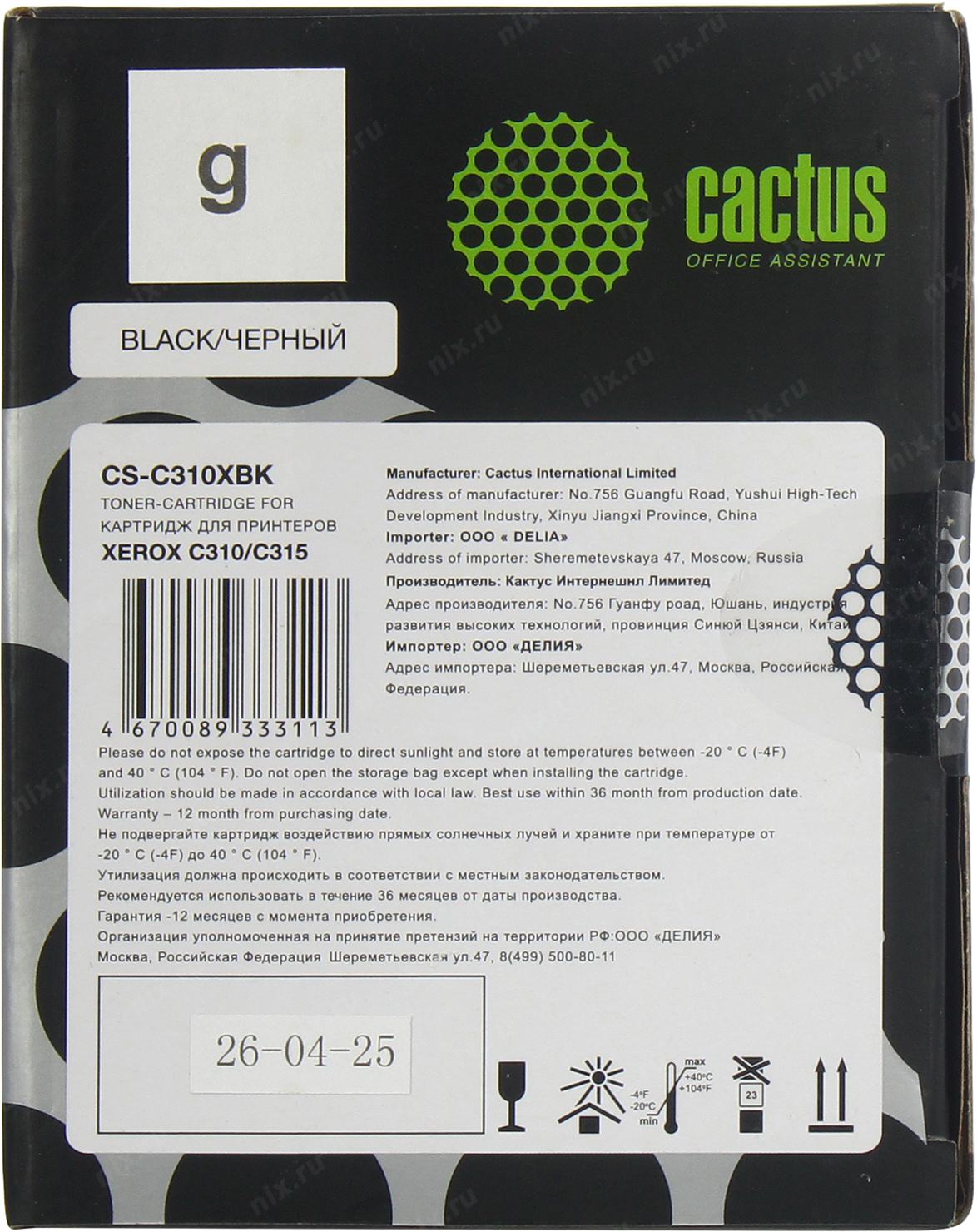 Картридж Cactus CS-C310XBK Black для Xerox C310/ C315