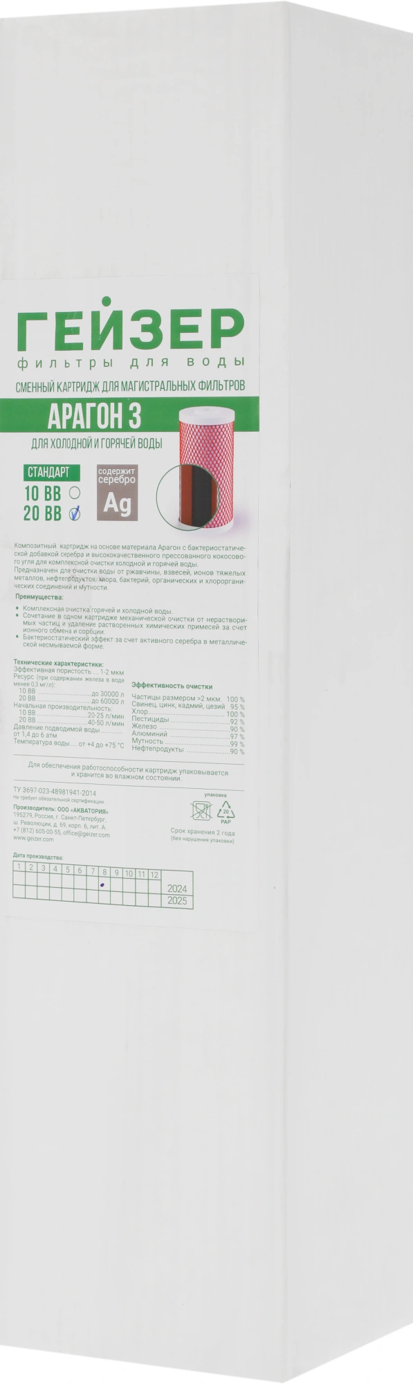 Картридж Гейзер Арагон 3 20ВВ для проточных фильтров ресурс:60000л (упак.:1шт) 30056
