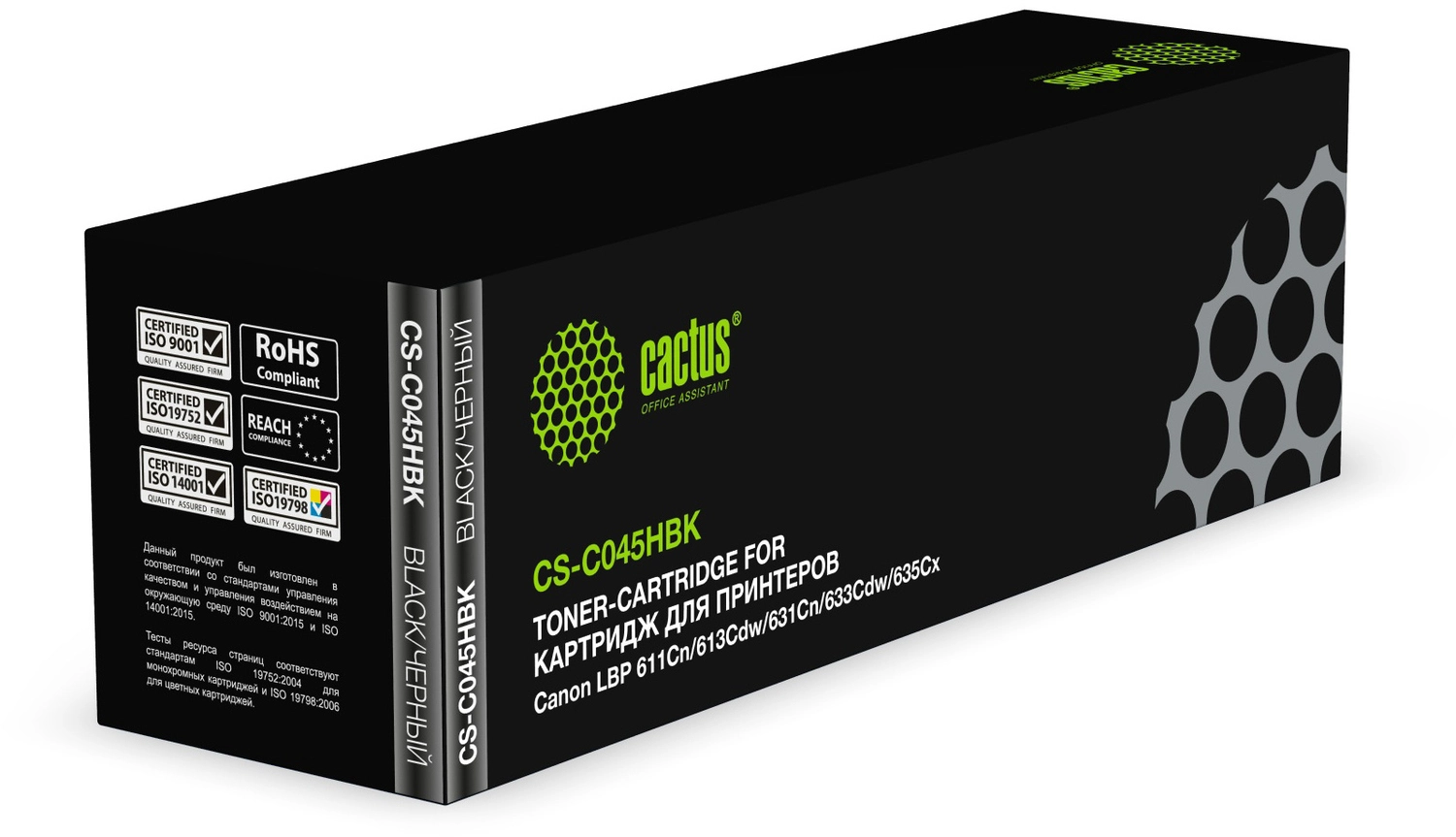 Картридж лазерный Cactus CS-C045HBK 045 H BK черный (2800стр.) для Canon LBP 611Cn/ 613Cdw/ 631Cn/ 633Cdw/ 635Cx