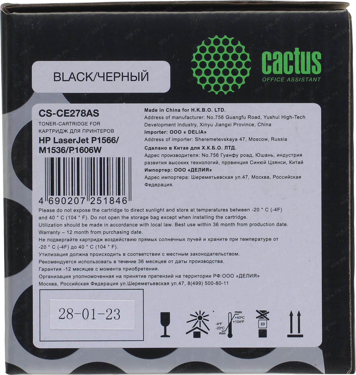 Картридж лазерный Cactus CS-CE278AS CE278A черный (2100стр.) для HP LJ P1566/ P1606w