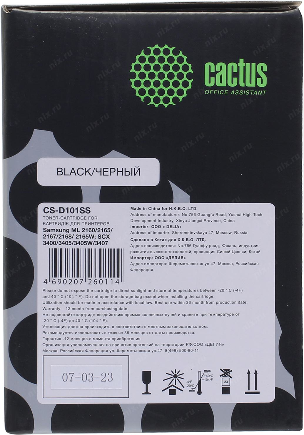 Картридж лазерный Cactus CS-D101SS MLT-D101S черный (1500стр.) для Samsung ML-2160/ 2165/ 2167/ 2168/ SCX-3400/ 3405