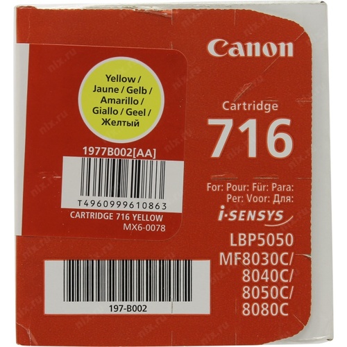 Картридж лазерный Canon 716Y 1977B002 желтый бар.в компл. (1500стр.) для Canon LBP-5050/ 5050N