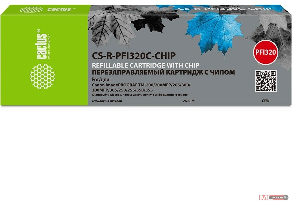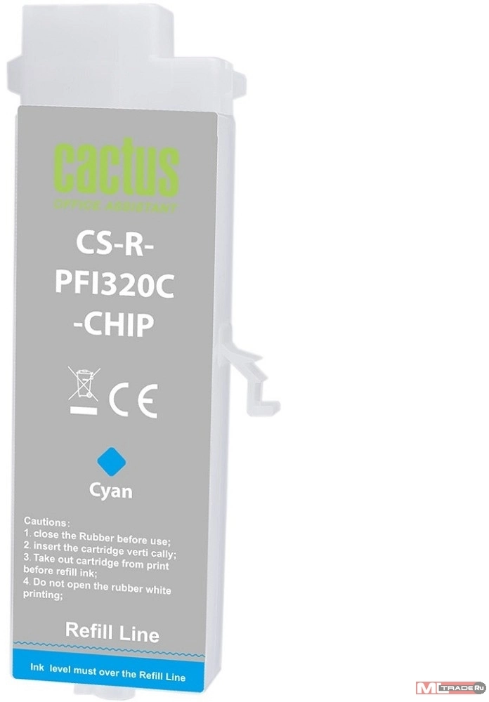 Картридж перезаправляемый струйный Cactus CS-R-PFI320C-CHIP PFI-320C голубой (260мл) для Canon imagePrograff TM-200/ 200MFP/ 205/ 300/ 300MFP/ 305/ 250/ 255/ 350/ 355 с чипом