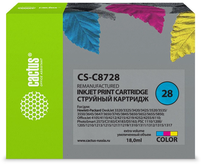 Картридж струйный Cactus CS-C8728 №28 многоцветный (18мл) для HP DJ 3320/ 3325/ 3420/ 3425/ 3520 с чипом