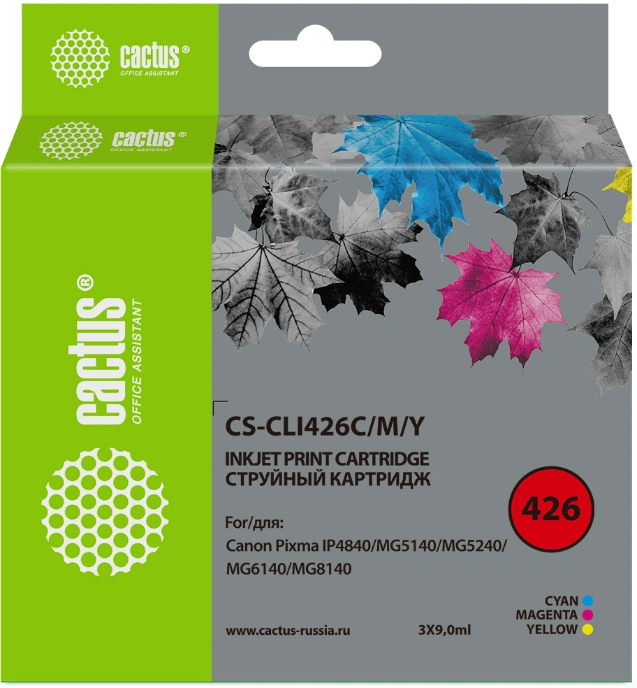 Картридж струйный Cactus CS-CLI426C CLI-426C голубой (9мл) для Canon Pixma MG5140/ 5240/ 6140/ 8140/ MX884 с чипом