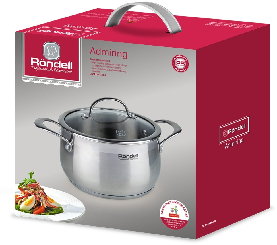 Кастрюля Rondell Admiring RDS-726 7.8л. d=24см (с крышкой) стальной