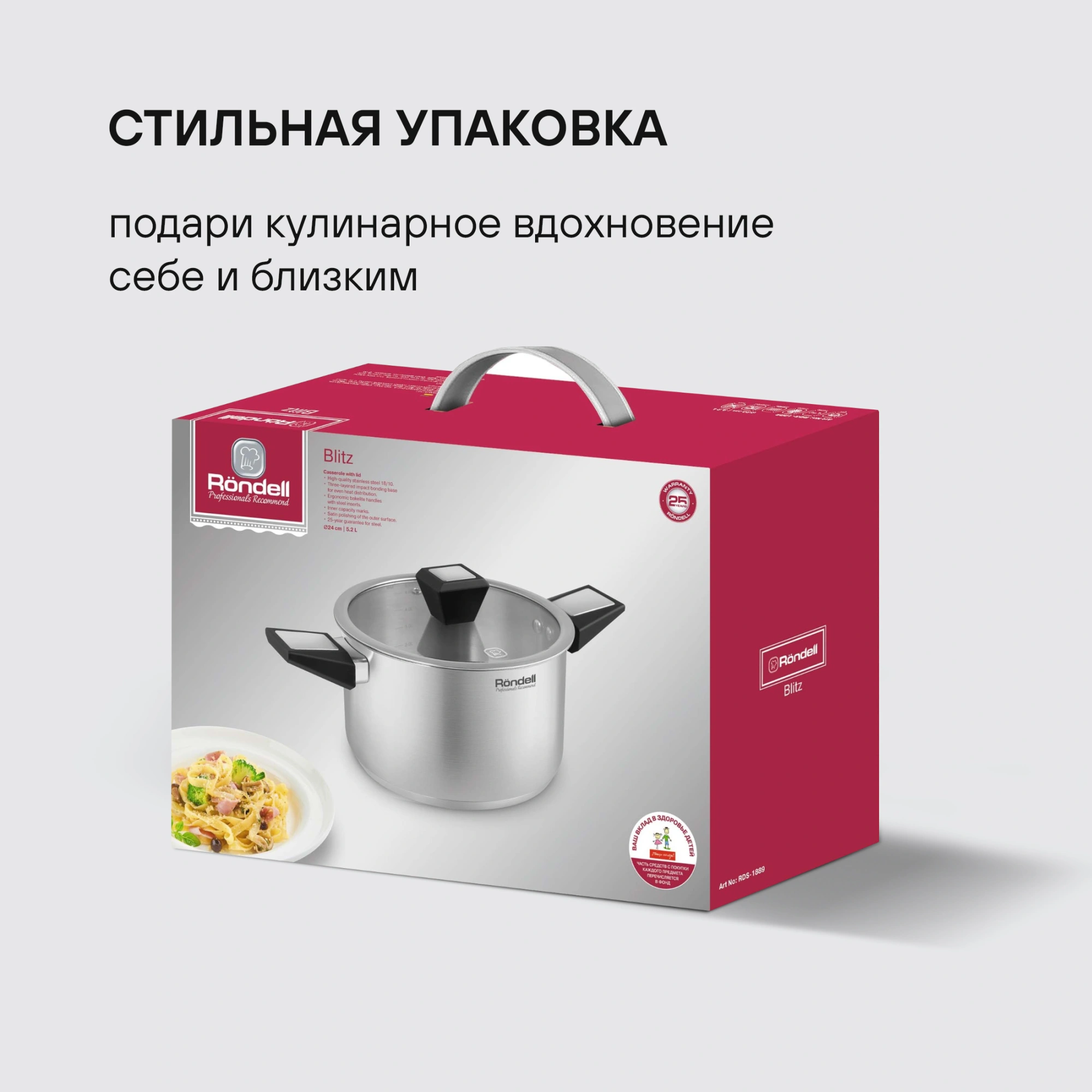 Кастрюля Rondell Blitz RDS-1890 5.2л. d=24см (с крышкой) стальной