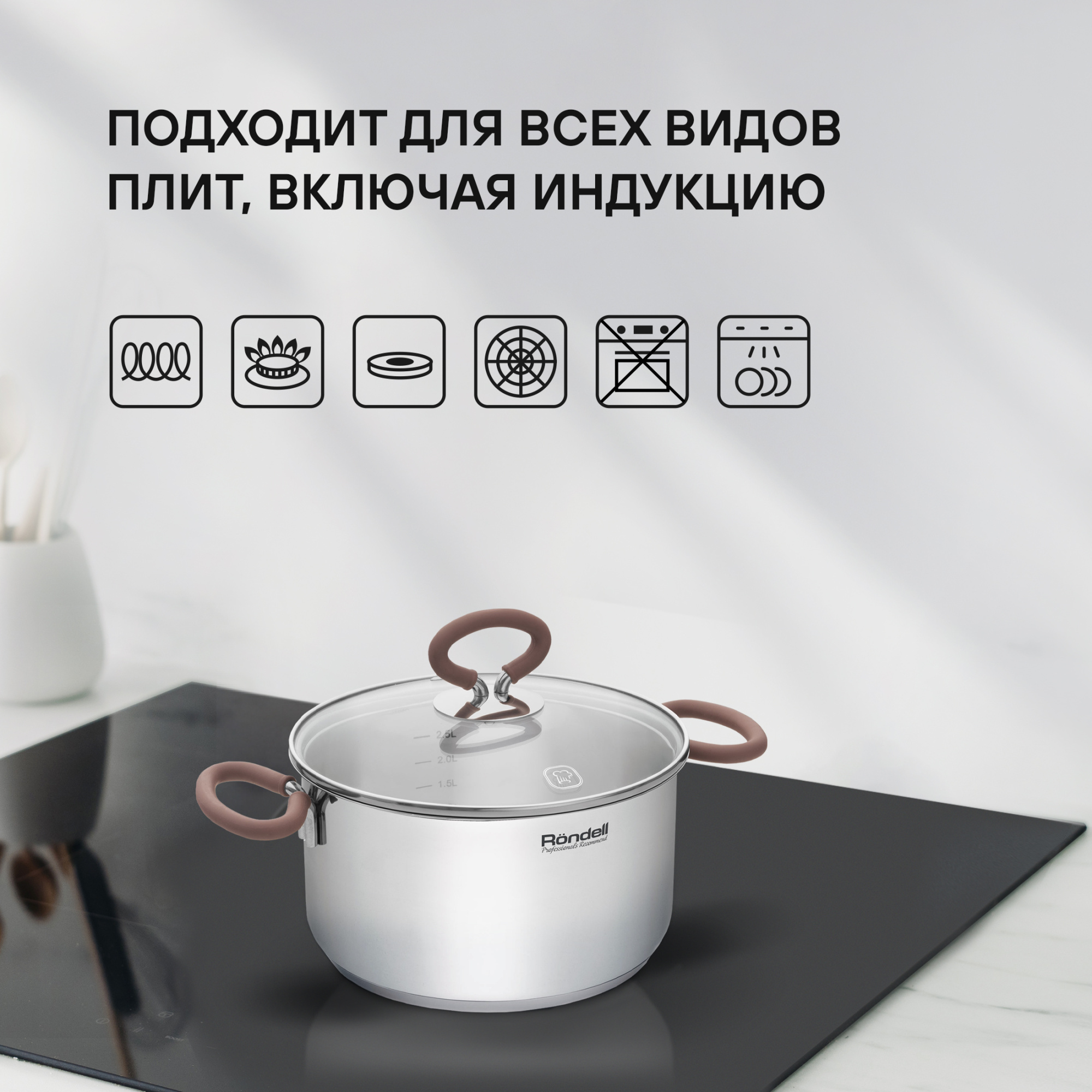 Кастрюля Rondell Etery RDS-1599 3.1л. d=20см (с крышкой) стальной