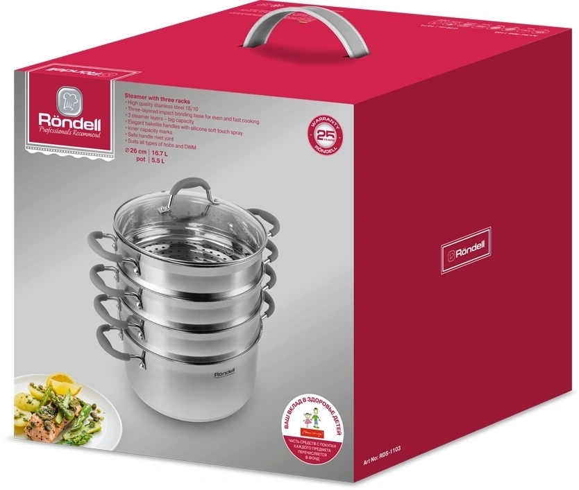 Кастрюля-пароварка Rondell RDS-1103 16.7л. d=26см (с крышкой) стальной