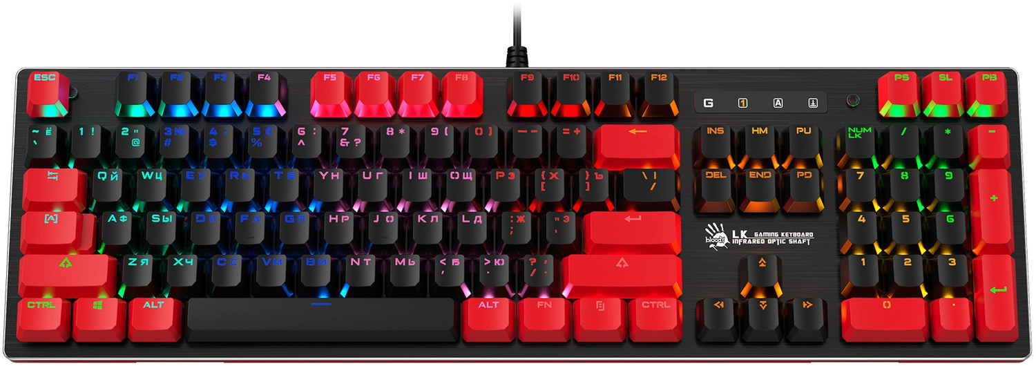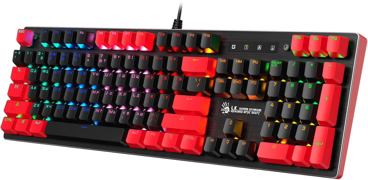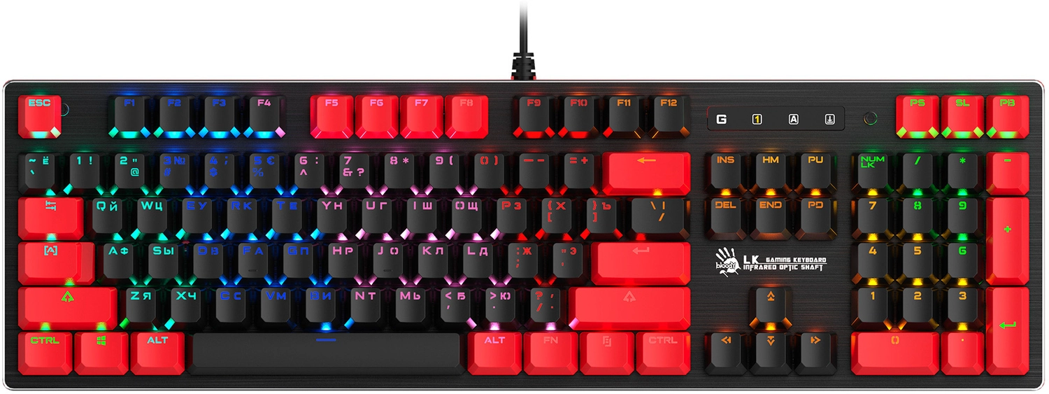 Клавиатура A4Tech B820N черный/ красный USB for gamer LED (B820N ( BLACK + RED) ) кабель 1.8м