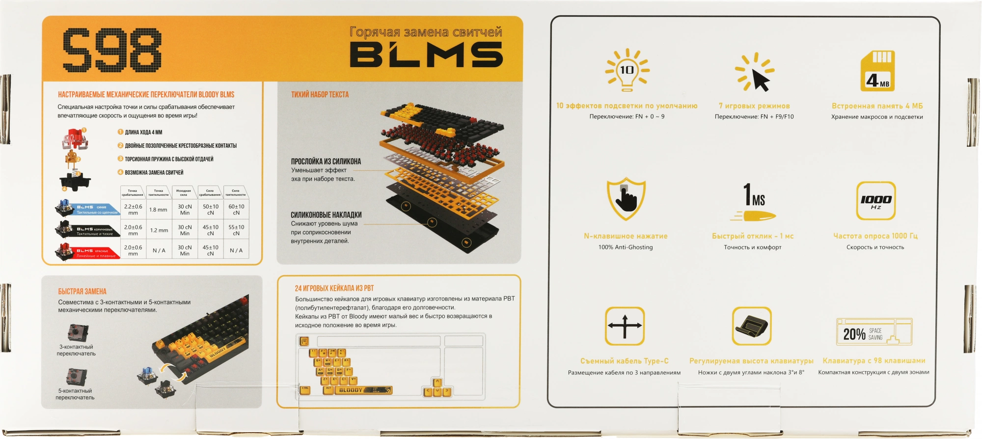 Клавиатура A4Tech S98 механическая желтый USB for gamer LED (SPORTS LIME) кабель 1.8м