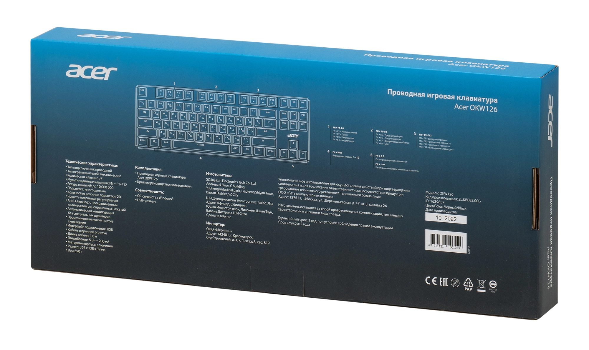 Клавиатура Acer OKW126 механическая черный USB Multimedia for gamer для ноутбука LED (ZL.KBDEE.00G) кабель 1.8м