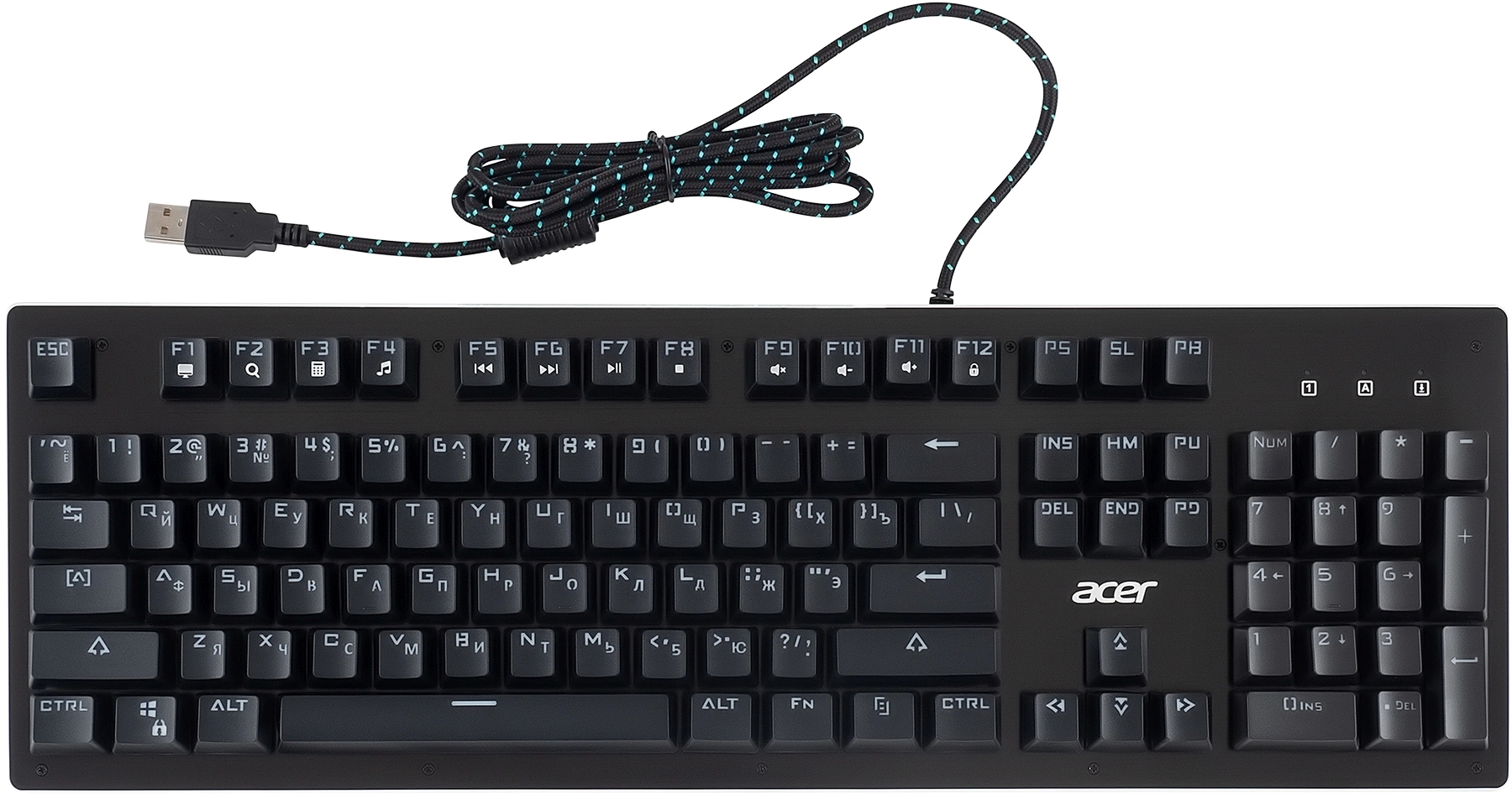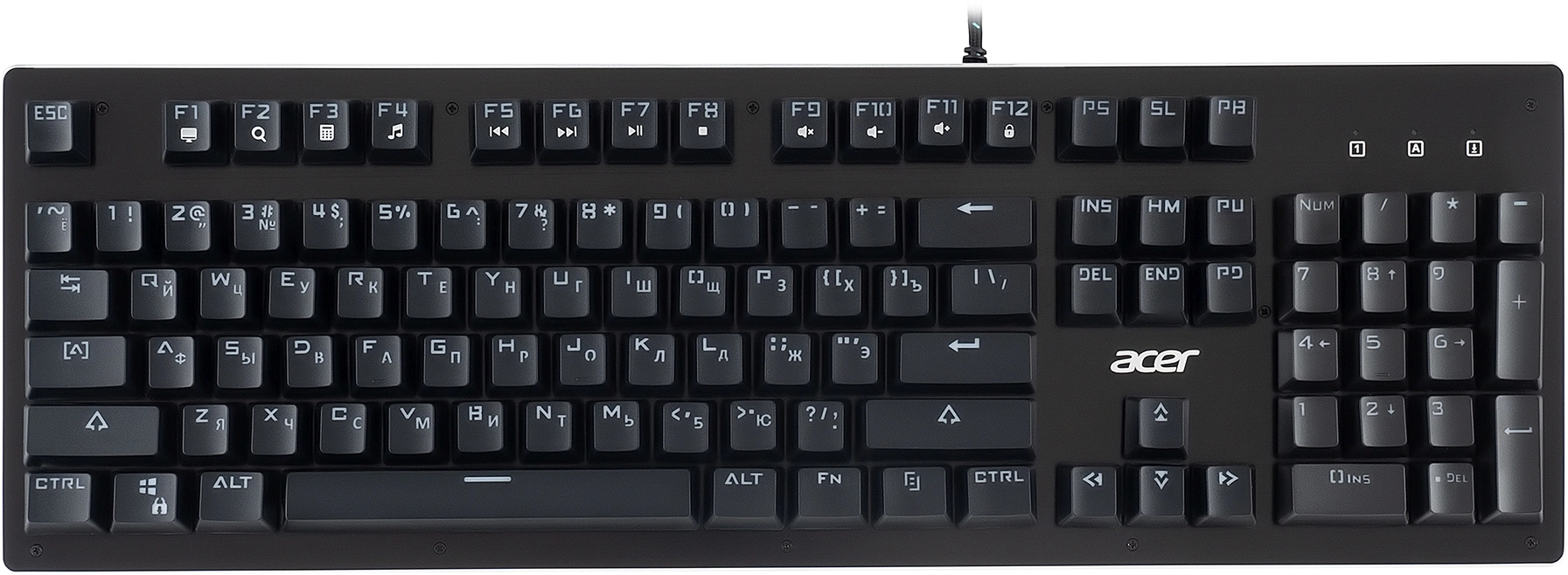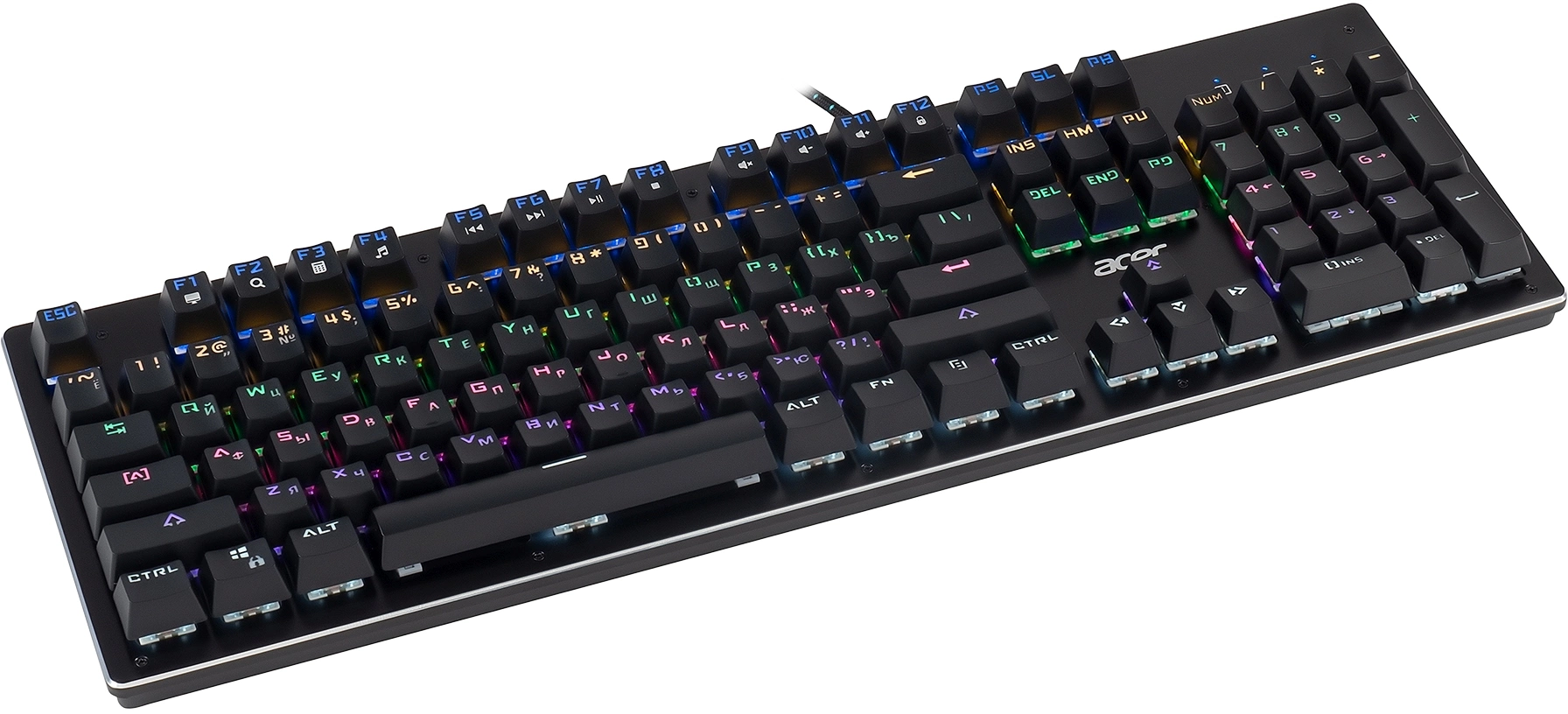 Полноразмерная механическая клавиатура. Прорезиненные ножки, Жесткая металлическая пластина, длинный кабель, регулируемая подсветка. Поддержка мультимедийных функций. Универсальный инструмент для работы и игр. Функция регулировки яркости подсветки.