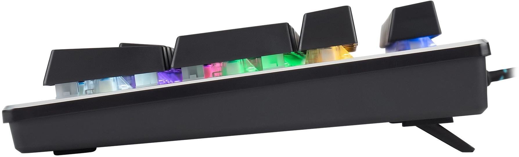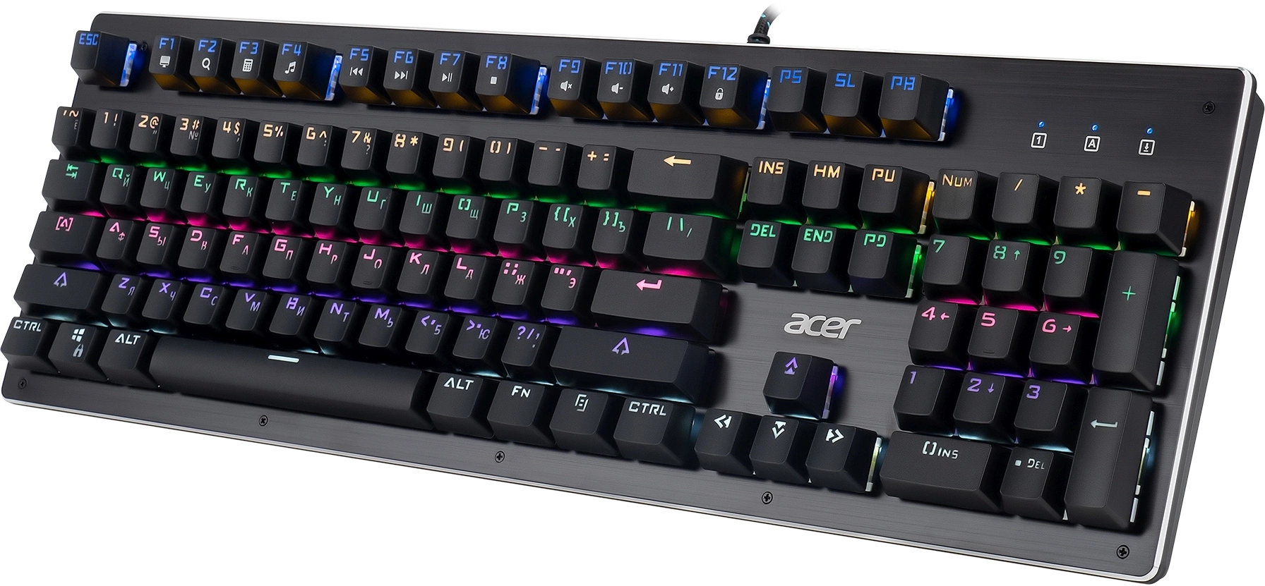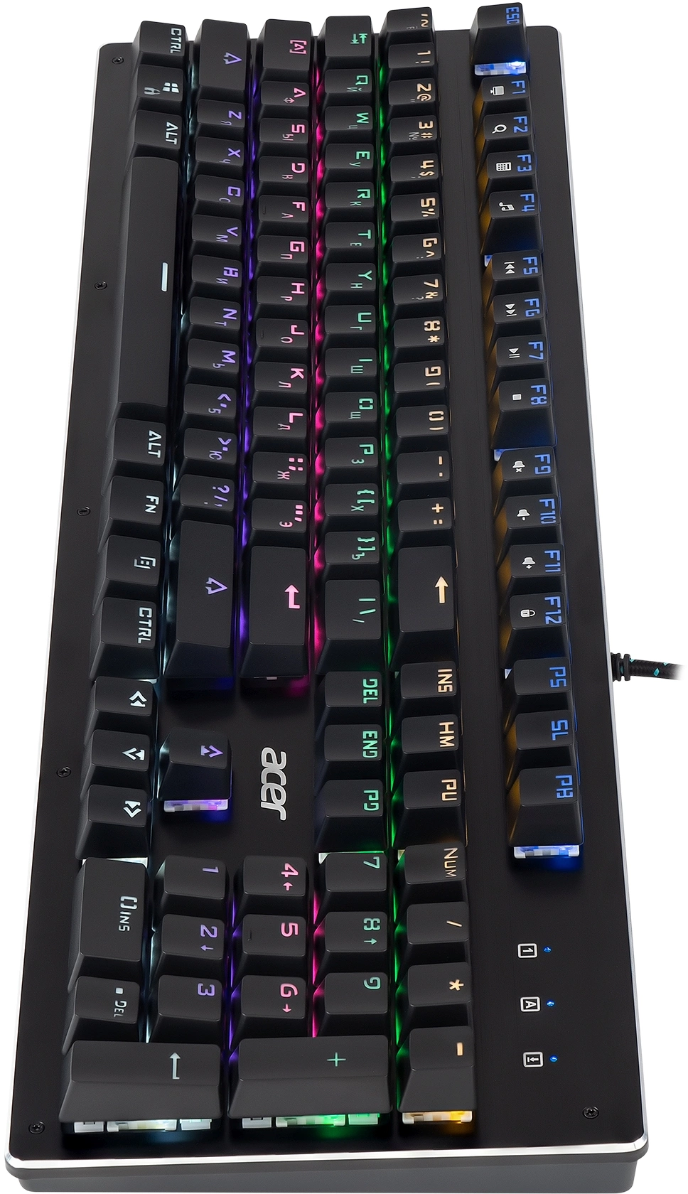 Полноразмерная механическая клавиатура. Прорезиненные ножки, Жесткая металлическая пластина, длинный кабель, регулируемая подсветка. Поддержка мультимедийных функций. Универсальный инструмент для работы и игр. Функция регулировки яркости подсветки.