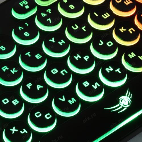 Полноразмерная клавиатура с круглыми клавишами и радужной подсветкой