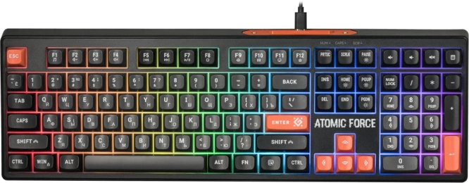 Клавиатура игровая 108кн+FN чер/ бел.кл. RGB Atomic Force GK-005 45005 DEFENDER