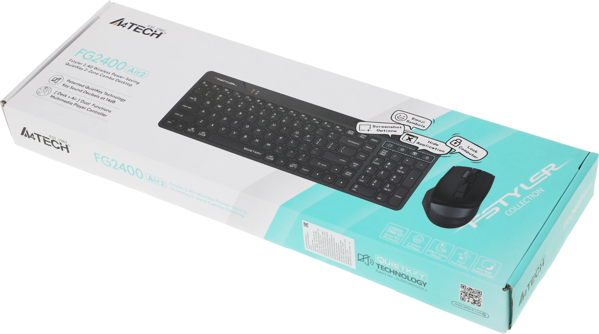 Клавиатура + мышь A4Tech Fstyler FG2400 Air2 клав:черный мышь:черный USB беспроводная slim (FG2400 AIR2 BLACK) FG2400 AIR2 BLACK
