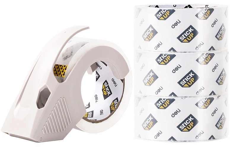 Клейкая лента канцелярская Deli EA695 супер прозрачная шир.48мм дл.60м 55мкр бесшумная в коробке (упак.:4шт) в комп.:диспенсер для клейкой ленты