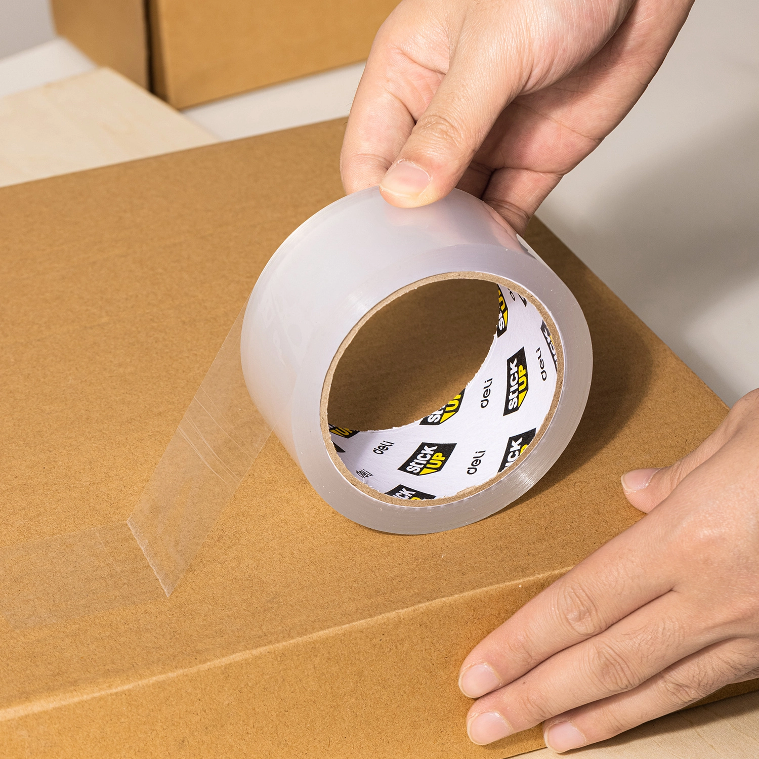 Клейкая лента упаковочная Deli EA318 прозрачная шир.48мм дл.54.9м (упак.:6шт)