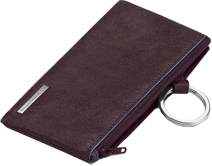 Футляр для ключей на молнии от компании Piquadro, коллекция Blue Square. Натуральная телячья кожа коричневого цвета. Оторочка по канту - голубым. Внешнее кольцо и карабин - для крепления к поясу, шнурку, дополнительных крупных ключей или др. Фирменная упаковка.