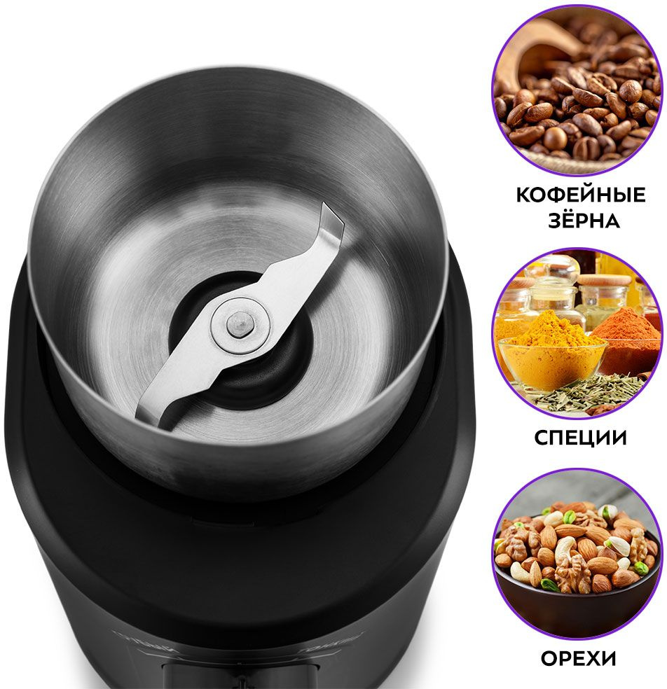 Кофемолка Kitfort KT-747 200Вт сист.помол.:ротац.нож вместим.:70гр черный/серебристый КТ-747