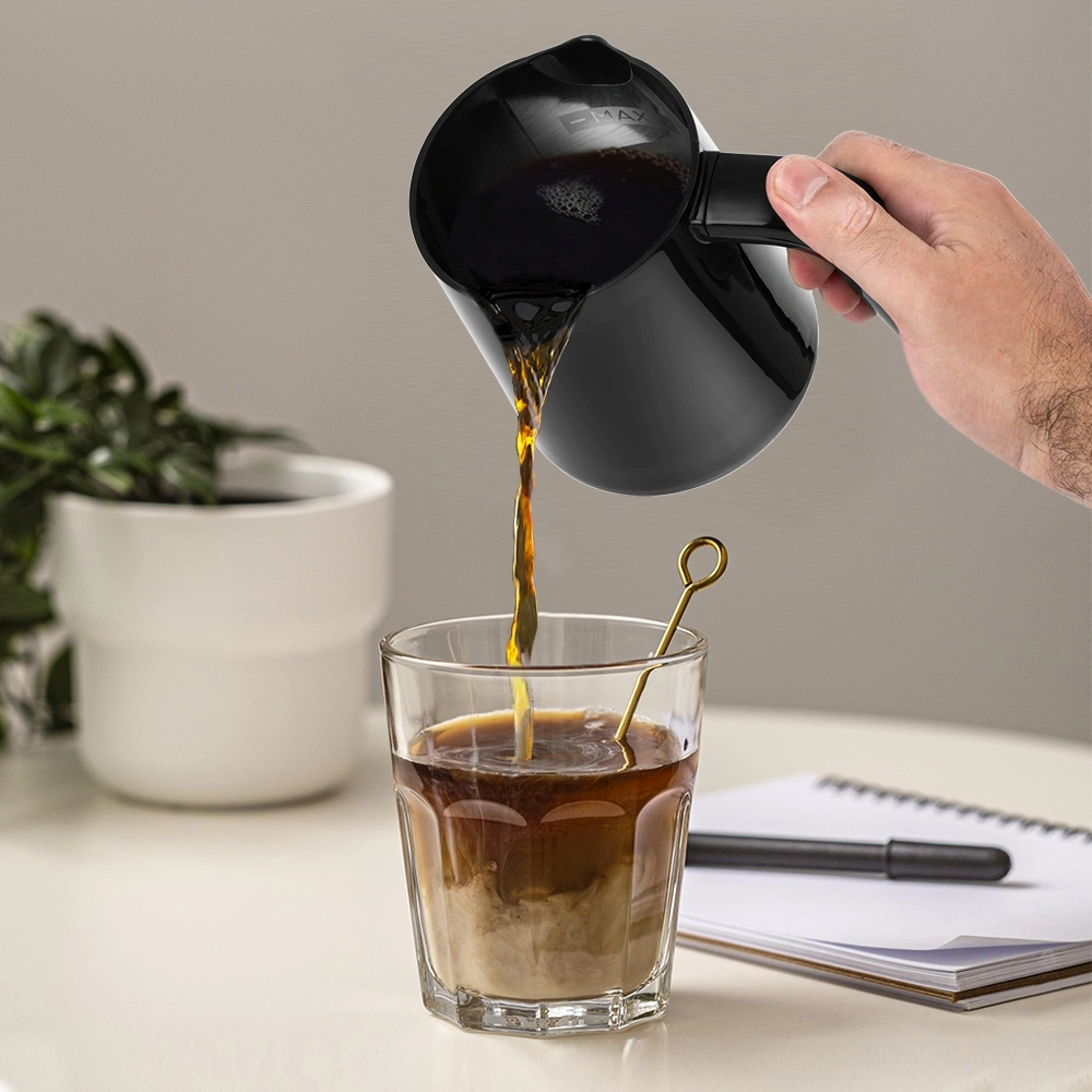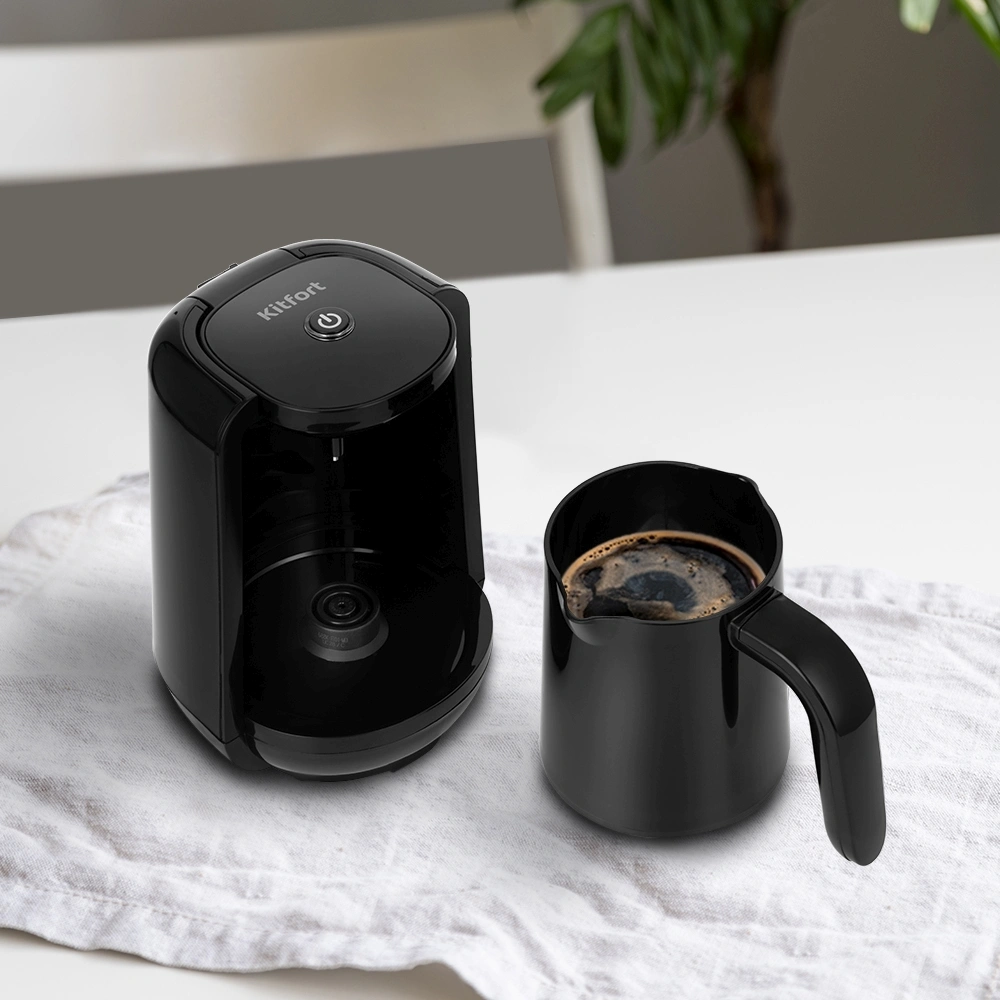 Кофе по-турецки и другие напитки за 3, 5 минуты! Электрическая турка Kitfort КТ-761 варит кофе по-турецки за 3, 5 минуты. С ней вы сможете быстро и легко сварить натуральный кофе на 4 чашки по 60 мл. А также подогреть молоко, приготовить какао или горячий шоколад.