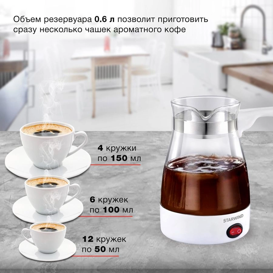 Кофеварка Электрическая турка Starwind STG6050 600Вт белый