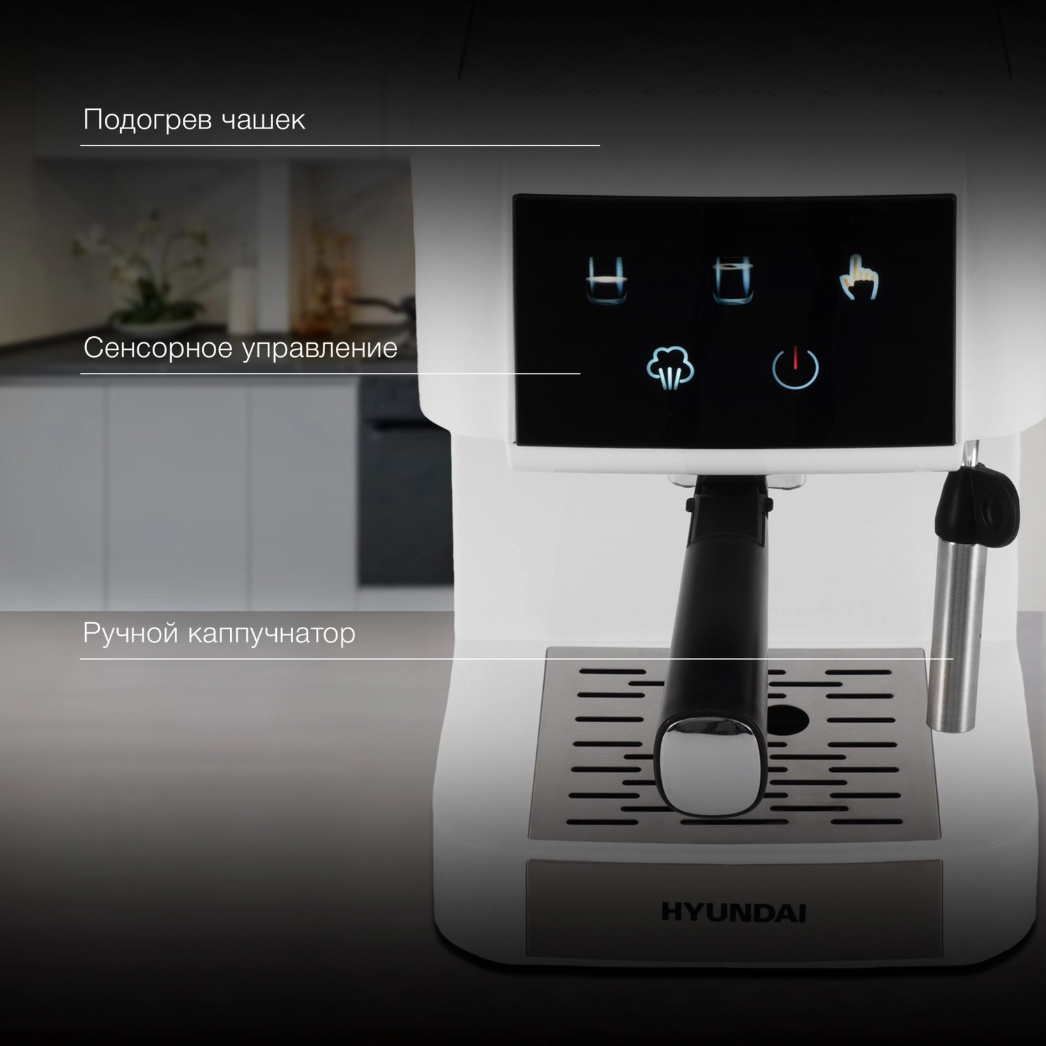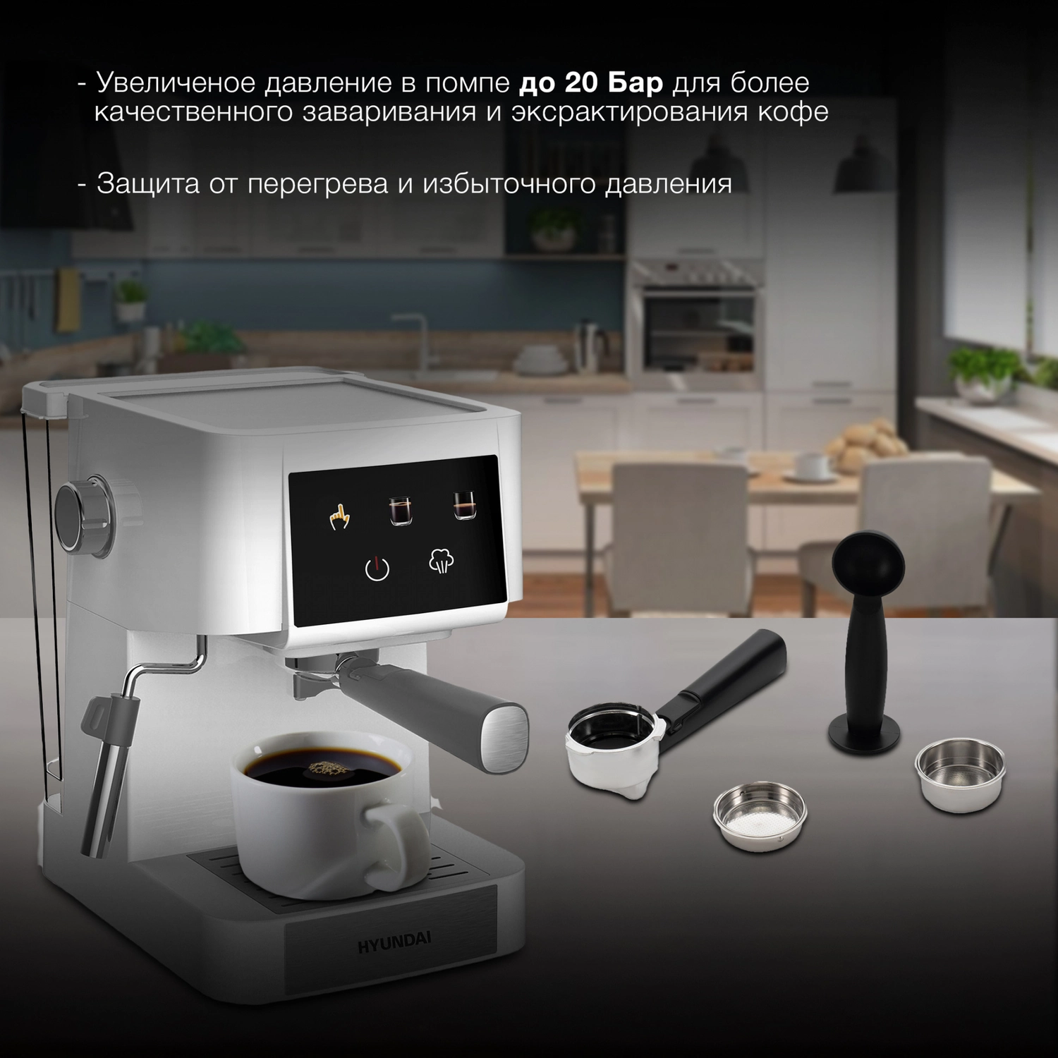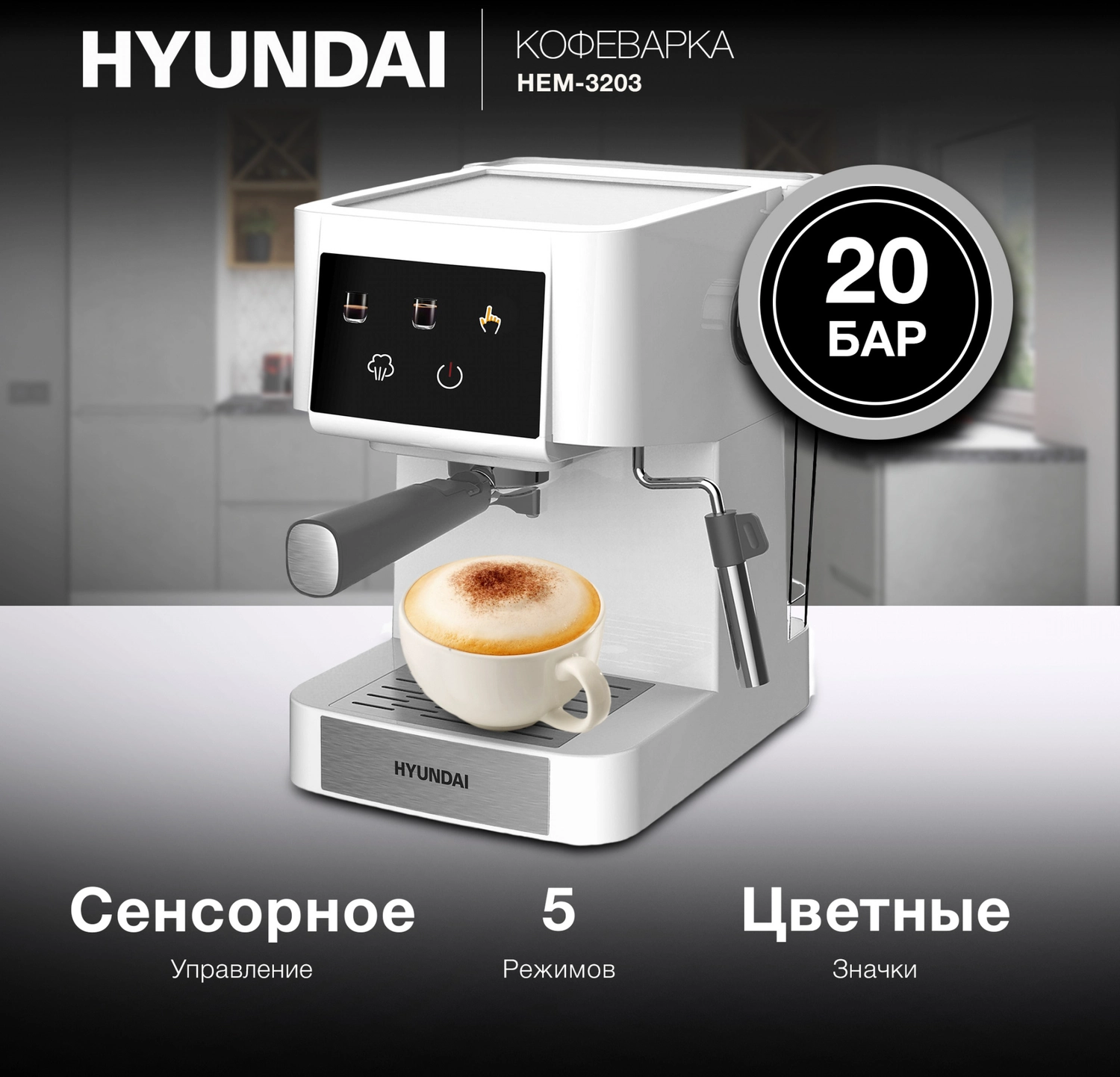 Кофеварка рожковая Hyundai HEM-3203 1000Вт белый/ серебристый