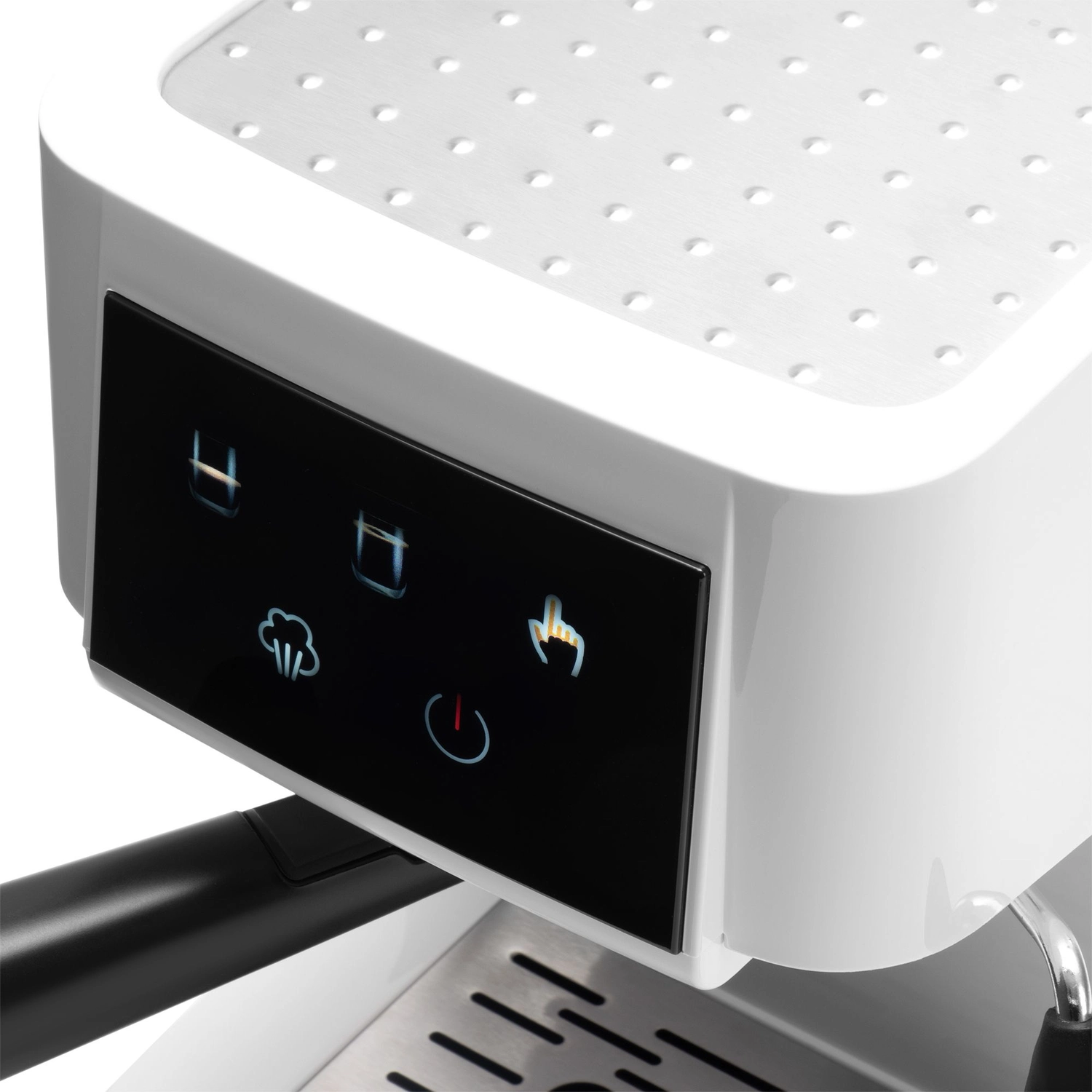 Помпа 20 бар для качественного экстрактирования, сенсорный дисплей, цветные эконки, ручная программа для дозирования объема порции, ручной каппучинатор для взбивания молока, площадка подогрева чашек и съемный поддон для капель, фильтр-сито на 1 и 2 порции и темпер с мерной ложкой в комплекте.
