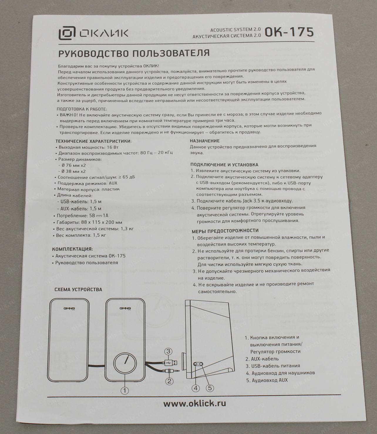 Колонки Оклик OK-175 2.0 черный 10Вт портативные OKLICK 1531649