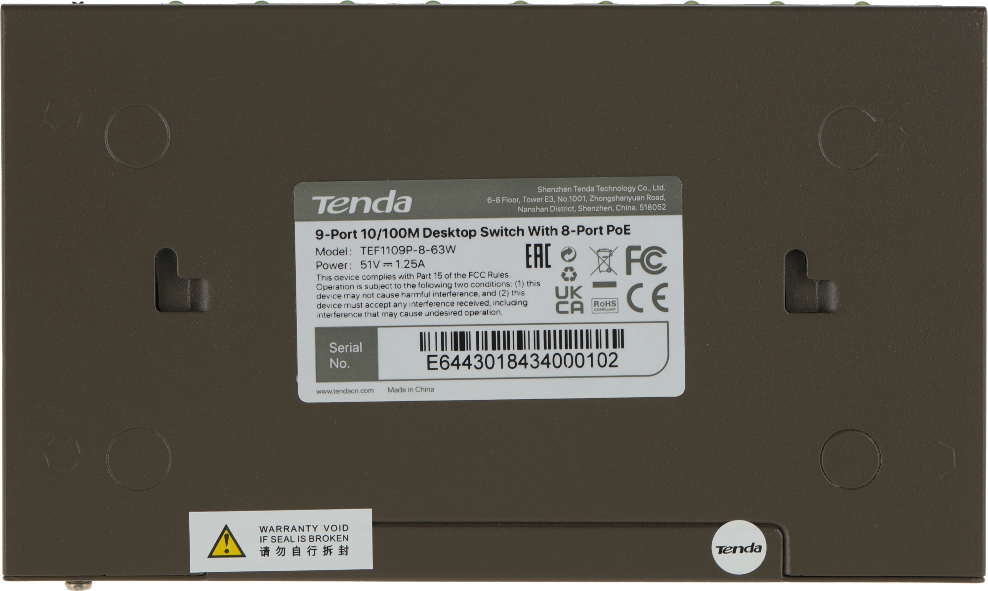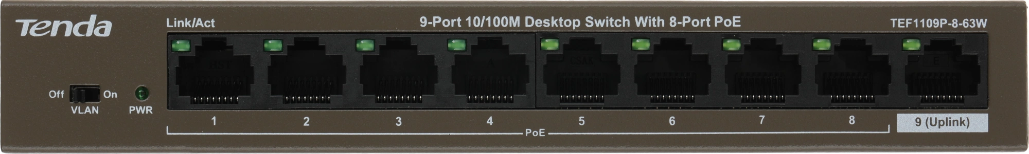 Коммутатор 9PORT 10/ 100M POE TEF1109P-8-63W TENDA