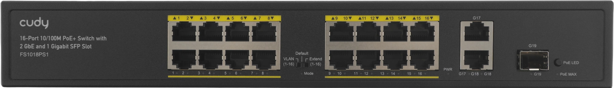 Коммутатор Cudy FS1018PS1 (L2) 16x100Мбит/ с 2x1Гбит/ с 1SFP 16PoE+ 200W неуправляемый