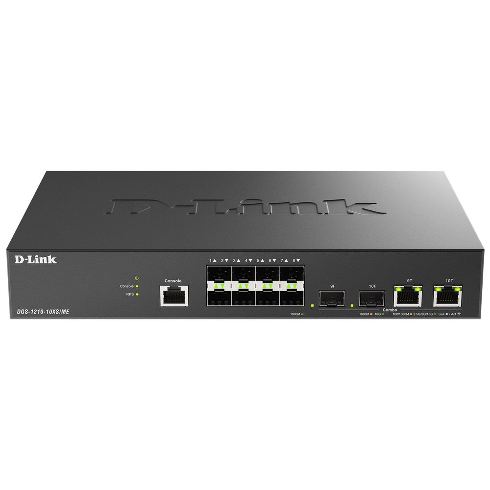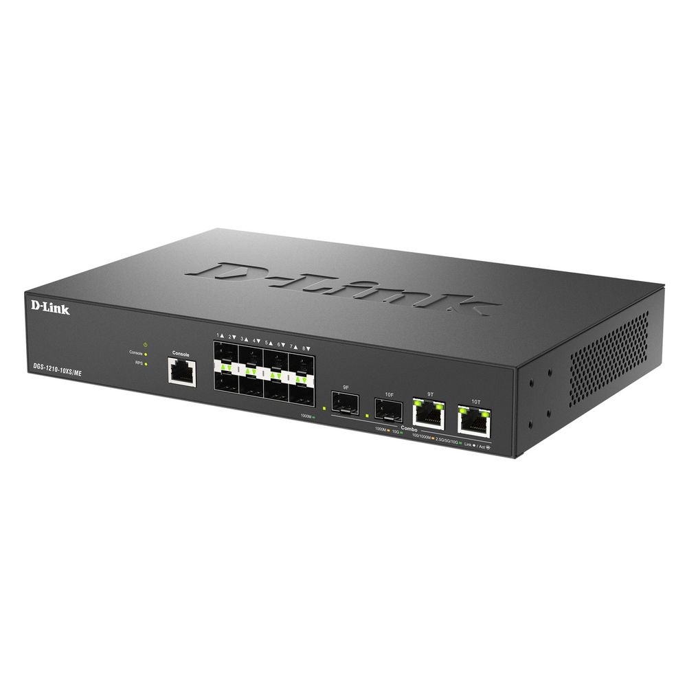 Коммутатор D-Link DGS-1210-10XS/ ME/ C1A Управляемый L2 коммутатор с 8 портами 1000Base-X SFP и 2 комбо-портами 10GBase-T/ SFP+