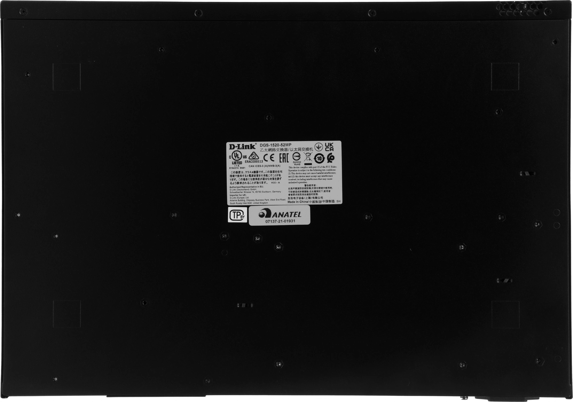 Коммутатор D-Link DGS-1520-52MP/ A1A Управляемый L3 стекируемый коммутатор с 44 портами 10/ 100/ 1000Base-T, 4 портами «100/ 1000/ 2.5GBase-T, 2 портами 10GBase-T и 2 портами 10GBase-X SFP+ (48 портов PoE 802.3af/ at, PoE-бюджет 370 Вт
