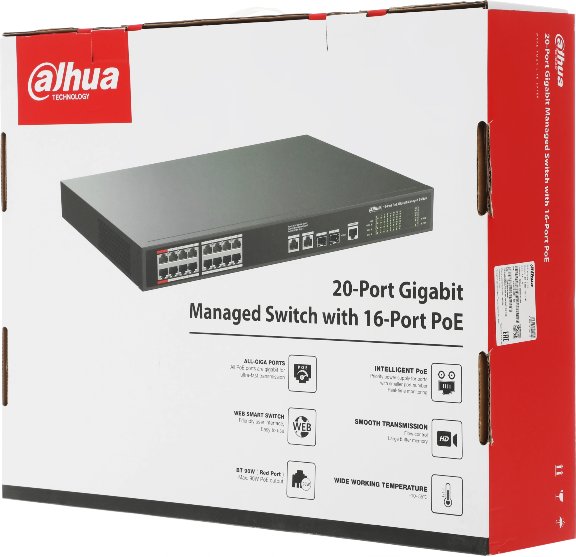 Коммутатор Dahua DH-S4220-16GT-240 (L2) 20x1Гбит/ с 2SFP 240W управляемый