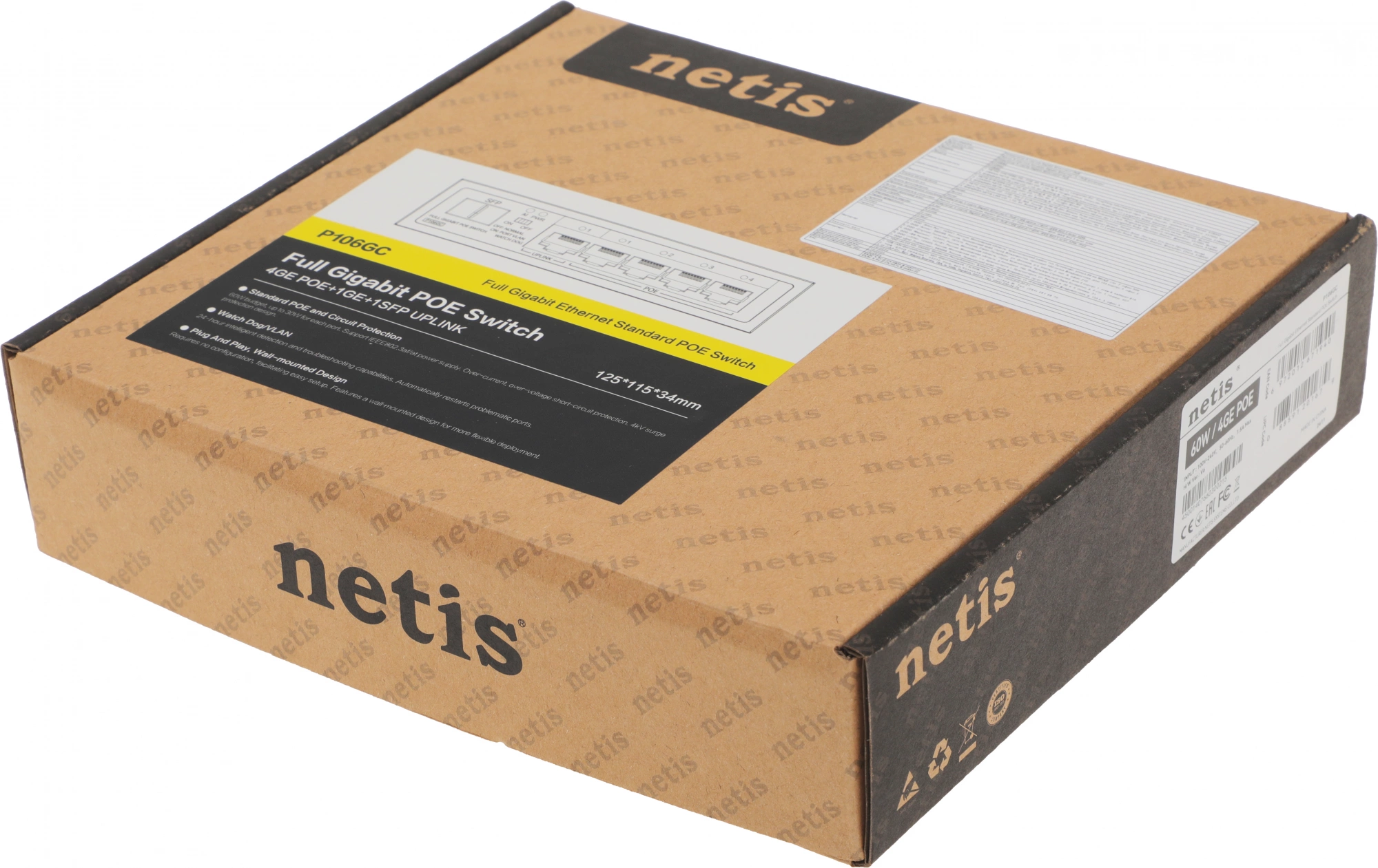 4 порта 10/ 100/ 1000 Мбит/ с с поддержкой POE, предоставляющих и данные, и питание, 1 порт 10/ 100/ 1000 Мбит/ с для подключения к сети или другим устройствам через RJ45, 1 Uplink порт SFP, макс. мощность одного порта - 30 Вт, макс. бюджет PoE коммутатора - 60 Вт.
