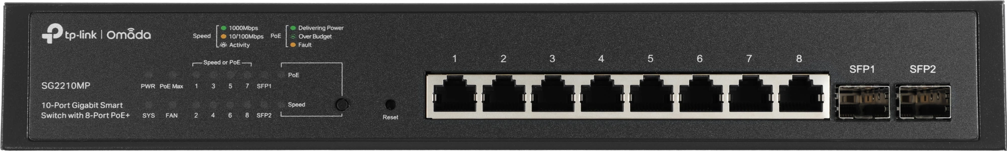 Коммутатор TP-Link SG2210MP (L2+) 8x1Гбит/ с 2SFP 8PoE+ 150W управляемый