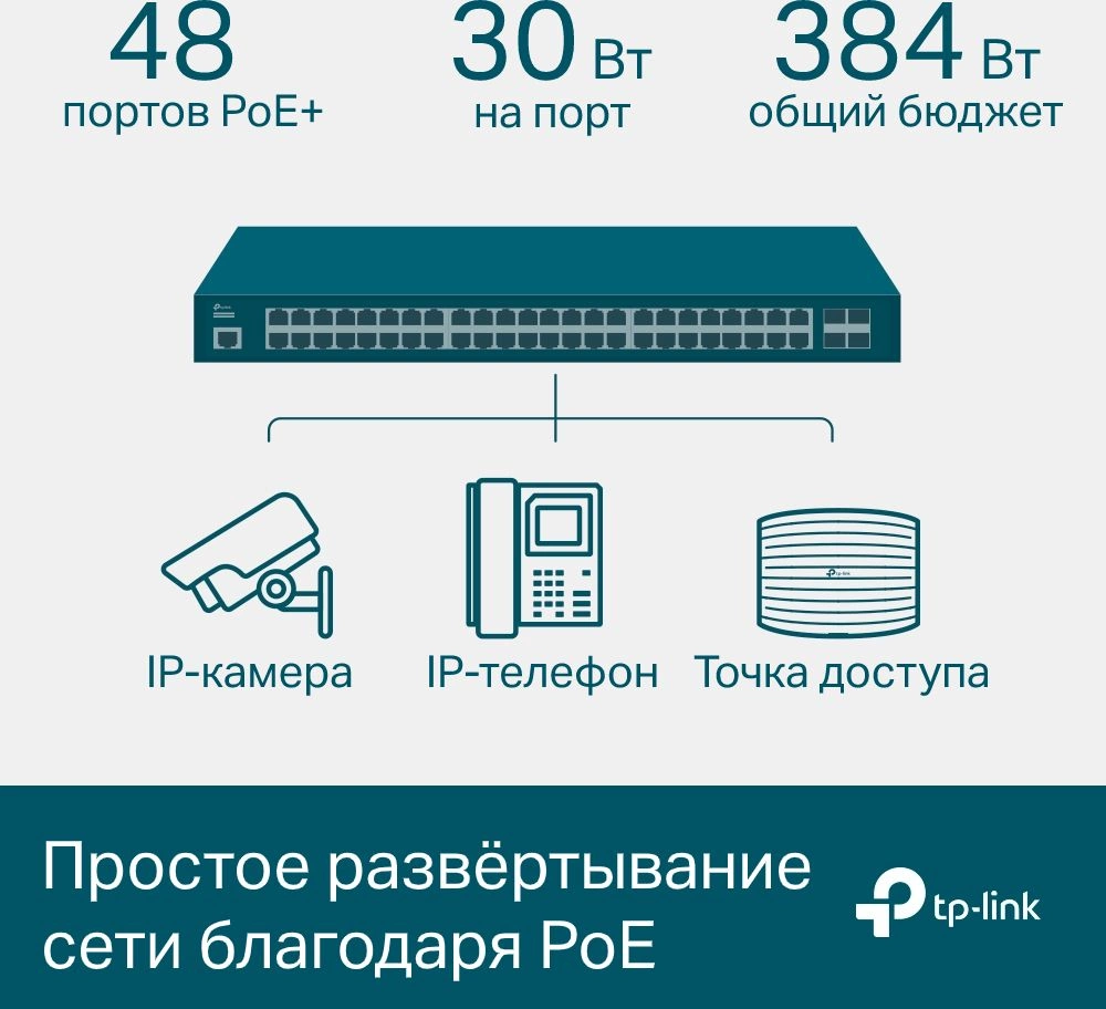 Коммутатор TP-Link SG3452P (L2+) 48x1Гбит/ с 4SFP 48PoE+ 384W управляемый