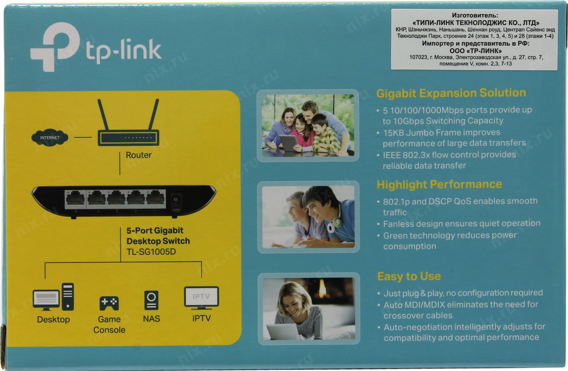 Коммутатор TP-Link TL-SG1005D (L2) 5x1Гбит/ с неуправляемый